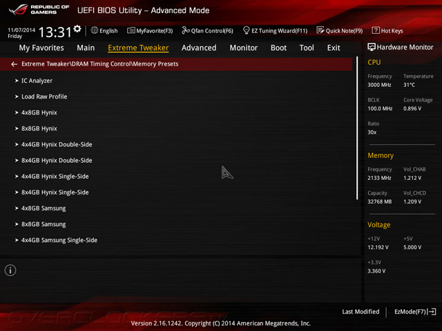 Так как разгон оперативной памяти DDR4 — дело новое и малоизученное, производитель позаботился о пользователях, которым во вкладке Memory Presets предлагаются наборы установок для комплектов ОЗУ на самых распространенных чипах.