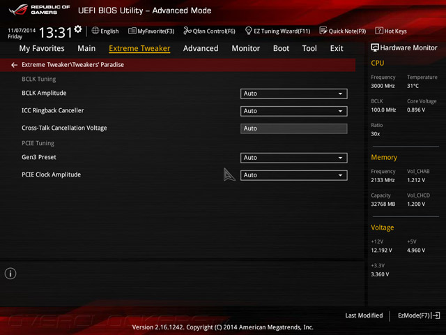 Помимо Ai Suite 3 для разгона можно использовать программы RC TweakIt, которая реализовывает возможности удаленного управления и контроля ROG Connect. С помощью RC TweakIt можно не только задавать параметры быстродействия и регулировать напряжения питания, но также отслеживать показания датчиков аппаратного мониторинга.