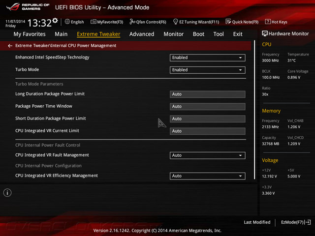 Тонкие настройки тактовых генераторов базовой частоты и шины PCI Express помещаются во вкладке Tweaker’s Paradise, а в подменю Internal CPU Power Management задаются лимиты потребляемой мощности центрального процессора и режимы работы встроенного преобразователя напряжения.