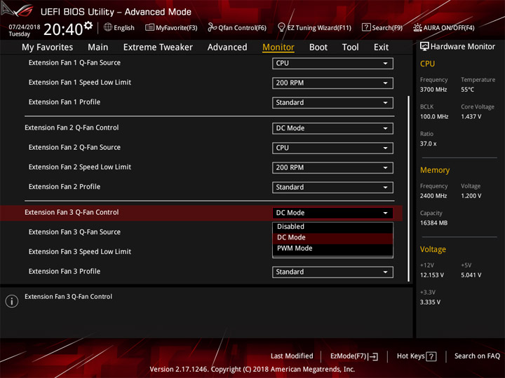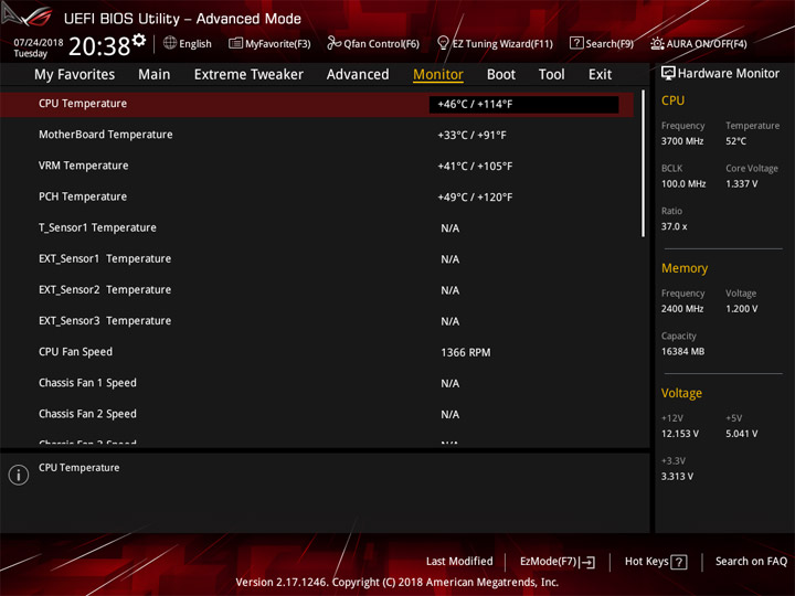Число пунктов на странице Monitor велико ввиду поддержки дополнительного контроллера для систем охлаждения. Сектор VRM снабжен температурным датчиком.