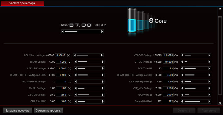 | CPU Core Voltage Offset (В) | (+/–) 0,00625–0,45 | 0,00625 |