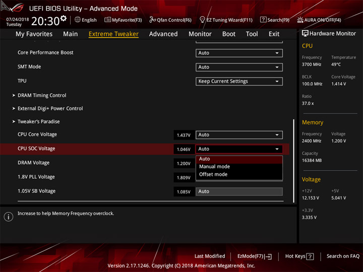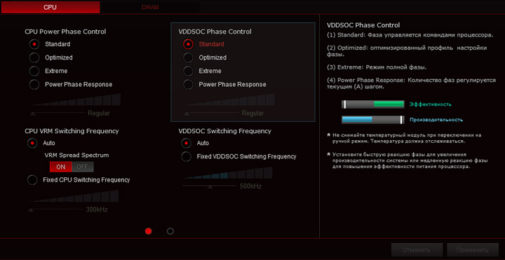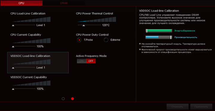 Предусмотрен механизм компенсации падению напряжения в виде профилей LLC для CPU и SOC Voltage. Про другие, более тонкие механизмы тоже следует указать, их собрали в рубрике Tweaker's Paradise.