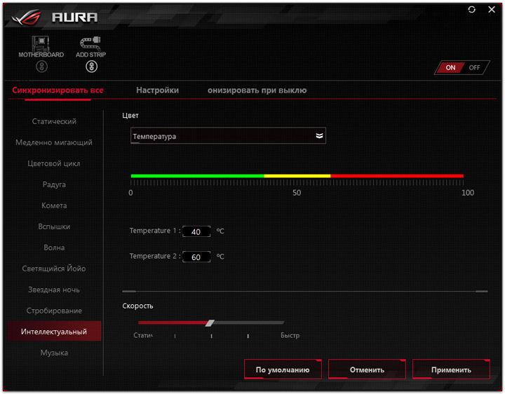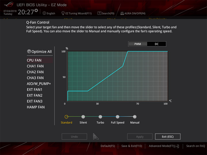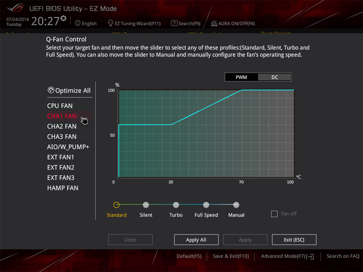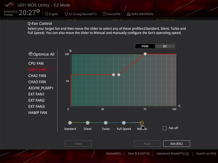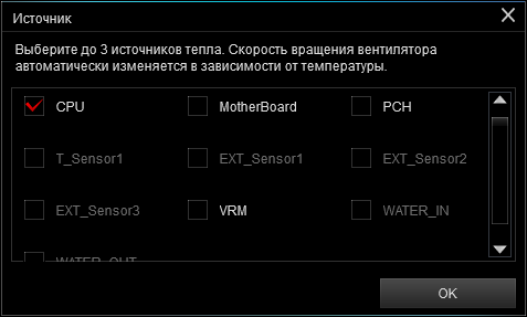 Есть отдельное меню для работы с охладителями. Тут можно в дружелюбной форме составить алгоритм замедления крыльчаток, предварительно указав способ работы с устройствами.