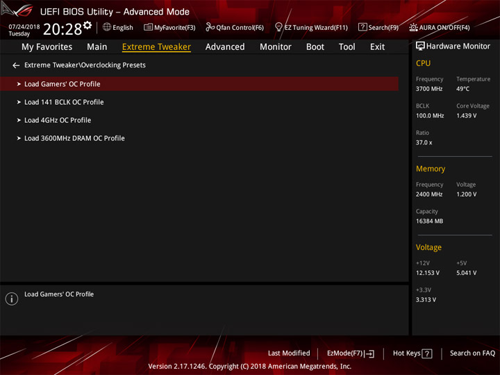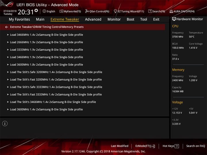 Заготовлен ряд профилей для наборов ОЗУ, а вот «переключатель» Maximus Tweak отсутствует.