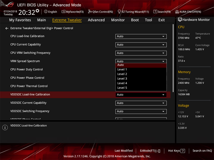 | VDDSOC Load-line Calibration | Auto/Level1…5 | 1 |