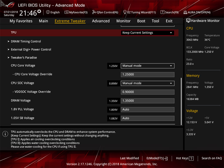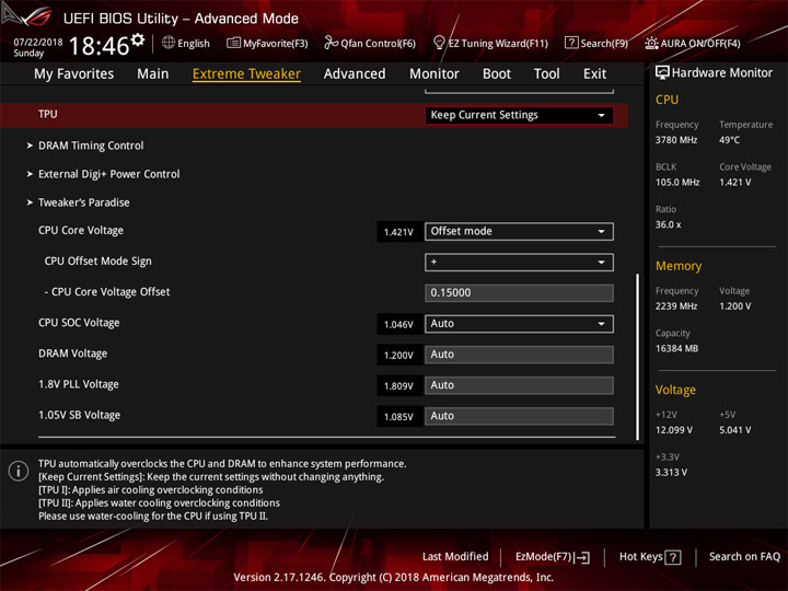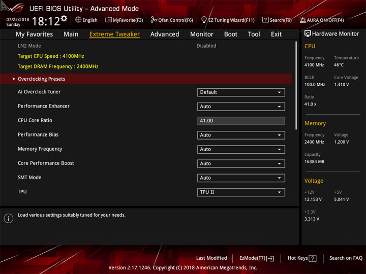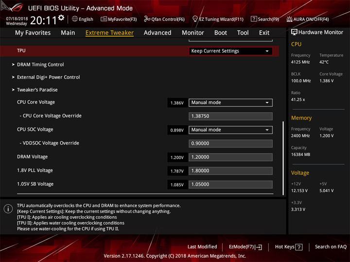 Второй профиль TPU повышает ставки до x41. Можно заметить как выросло фактическое процессорное напряжение в UEFI, повысилось до двух вольт и опорная величина, равняющаяся обычно 1,8 В.