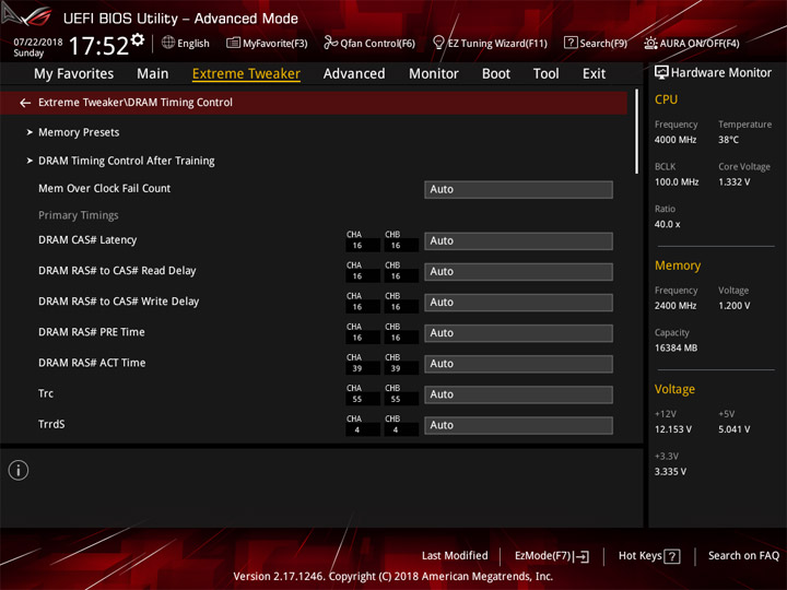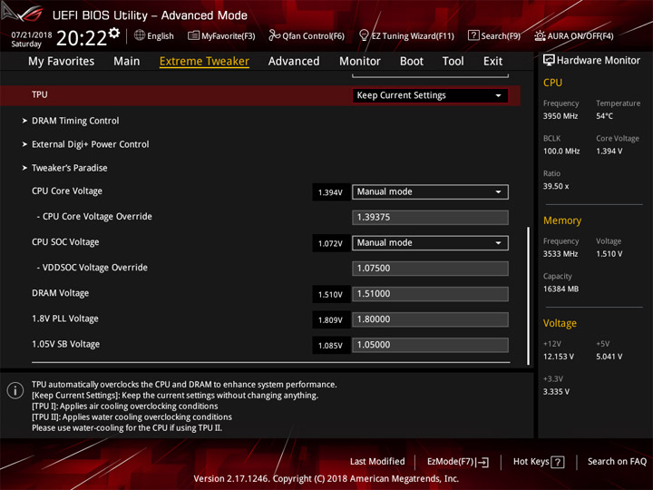 Первый из фирменных профилей по разгону TPU устанавливает планку частоты на 4 ГГц. При этом память остаётся работать на штатных отметках — 2400 МГц.