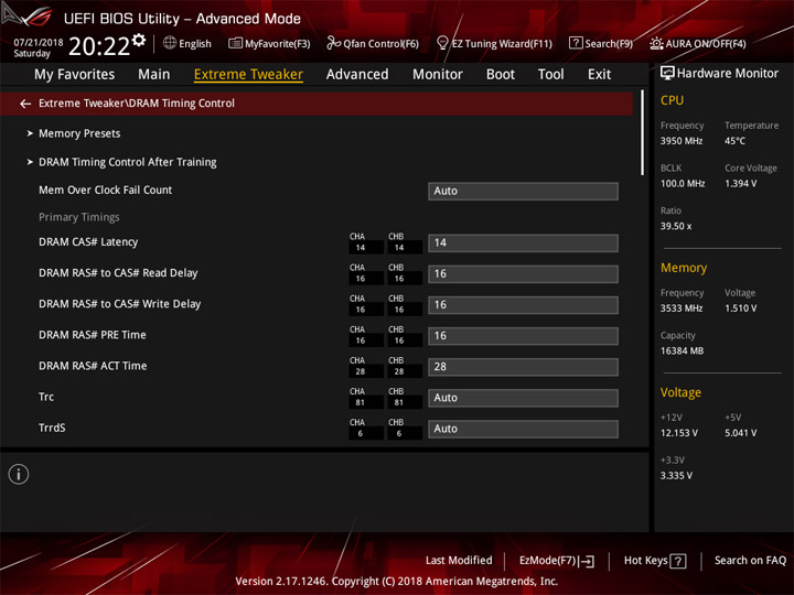 Теперь Level 5 у LLC для CPU Voltage продемонстрировал буквально идеальную стабилизацию напряжения, значение — 1,394 В. На модулях памяти средней величиной были 1,52 В, а это уже выходит за грани разумного для ежедневного использования. Фиксировались основные задержки (14-16-16-16-28-1T) и приводился в активное состояние пункт UEFI GearDownMode.