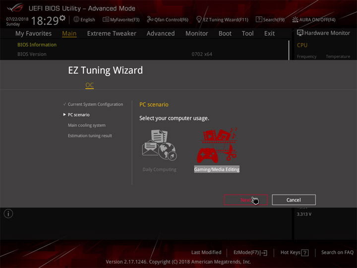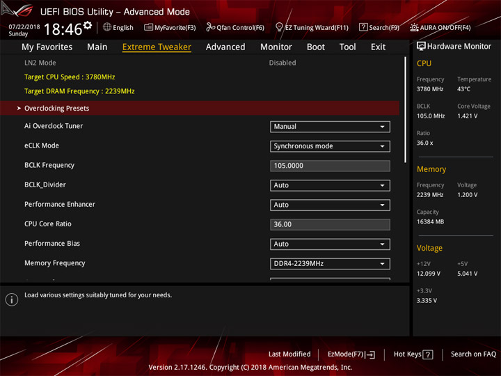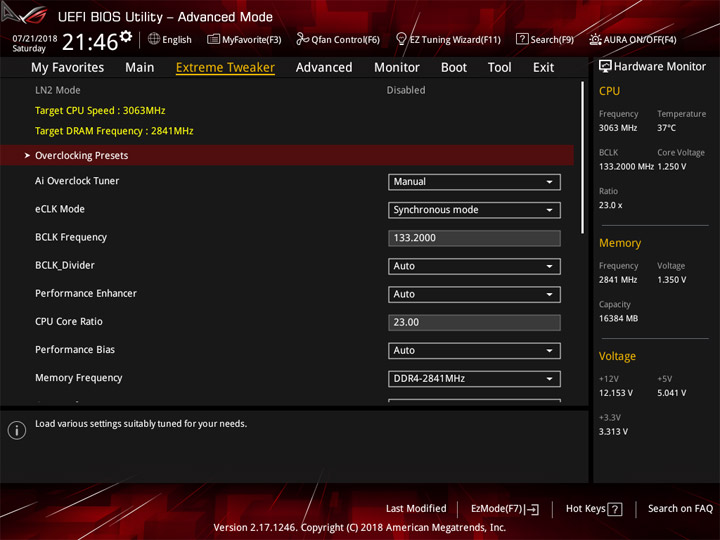 Фирменный мастер по выбору профилей эксплуатации системы EZ Tuning Wizard в наиболее ускоренном варианте использует приём наращивания базовой частоты вместе с явным указанием множителя ЦП, а вот память ускоряется исключительно за счёт работы синхронного режима BCLK. Уровень 1.8V PLL повысился до 2,1 В.