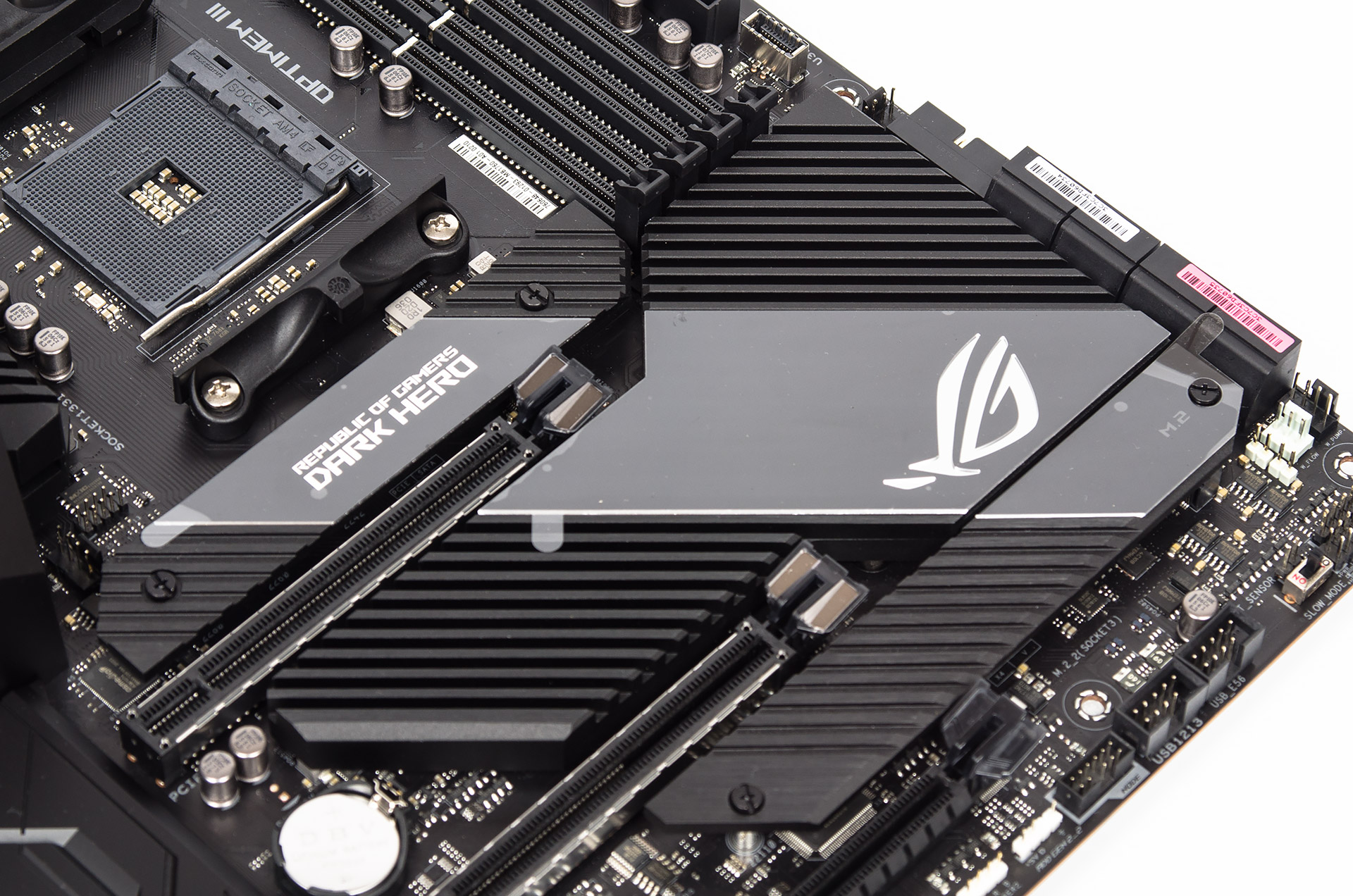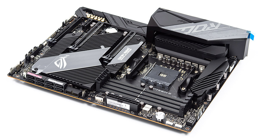 Радиатор для X570 действительно огромный, обособленный от остальных (для устройств M.2), он занимает фактически всё доступное на плате пространство.