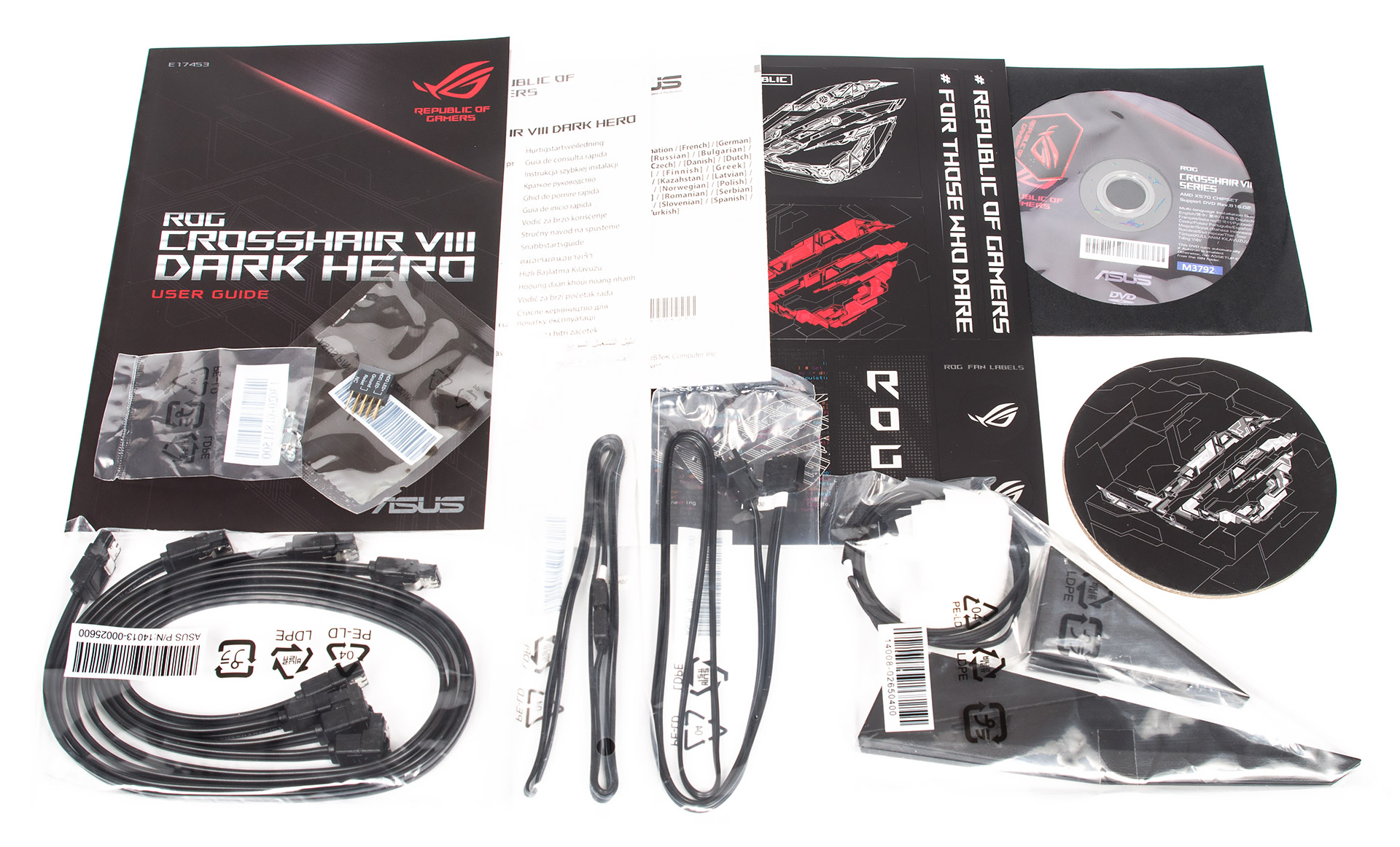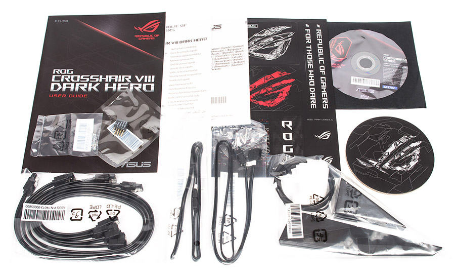 - комплект наклеек с различными изображениями серии ROG, в том числе и для кабелей;