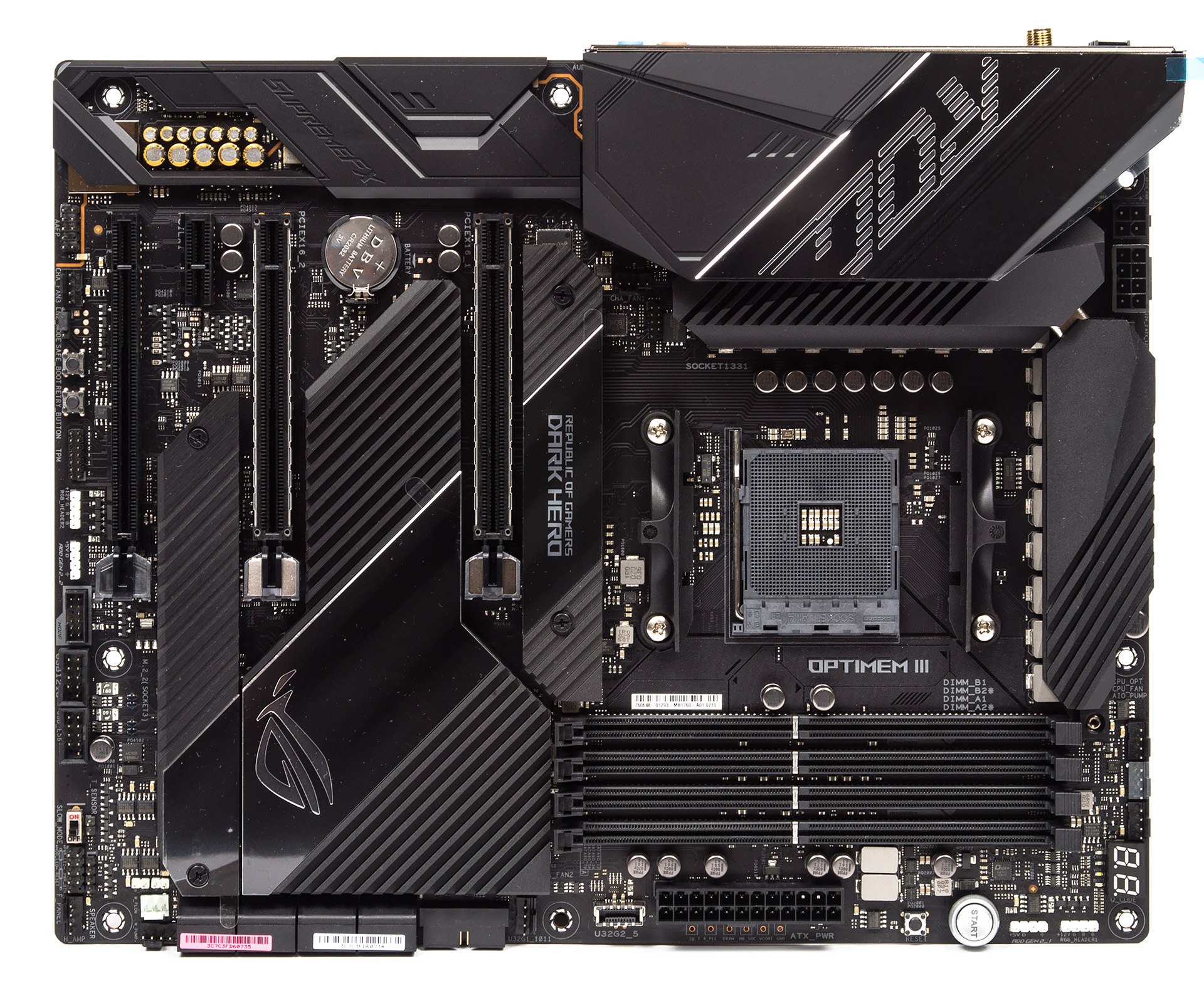 Изменений в дизайне минимум. Обновление коснулось защитной накладки над портами ввода-вывода задней панели, верхний охладитель M.2 тоже другой, поскольку он теперь независим от центрального, ответственного за чипсет. В целом, плата осталась фактически той же.