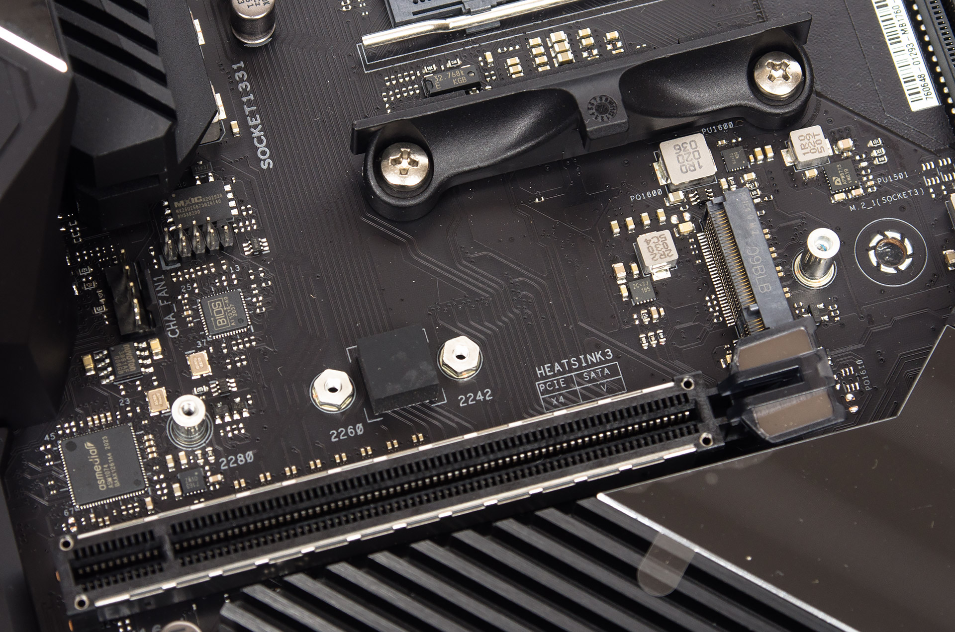 Сверху можно будет использовать устройства M.2 типоразмера 2280, 2260 или 2242. Сюда подведены линии от сокета.