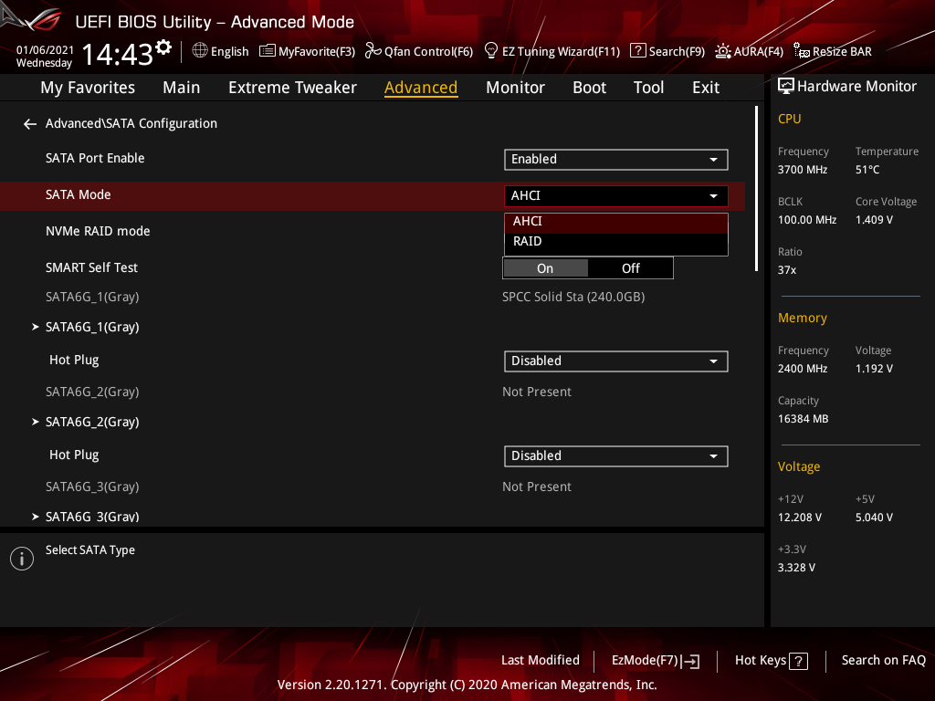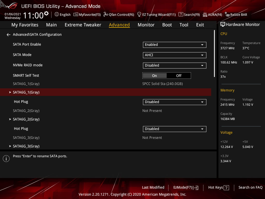 - накопитель: Silicon Power Slim S55 (240 ГБ, SATA 6 Гбит/с, AHCI mode);