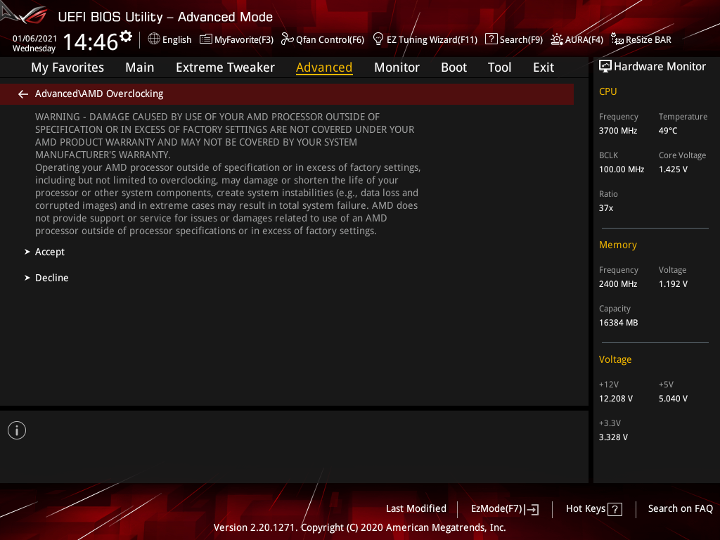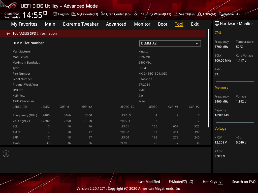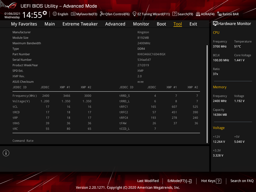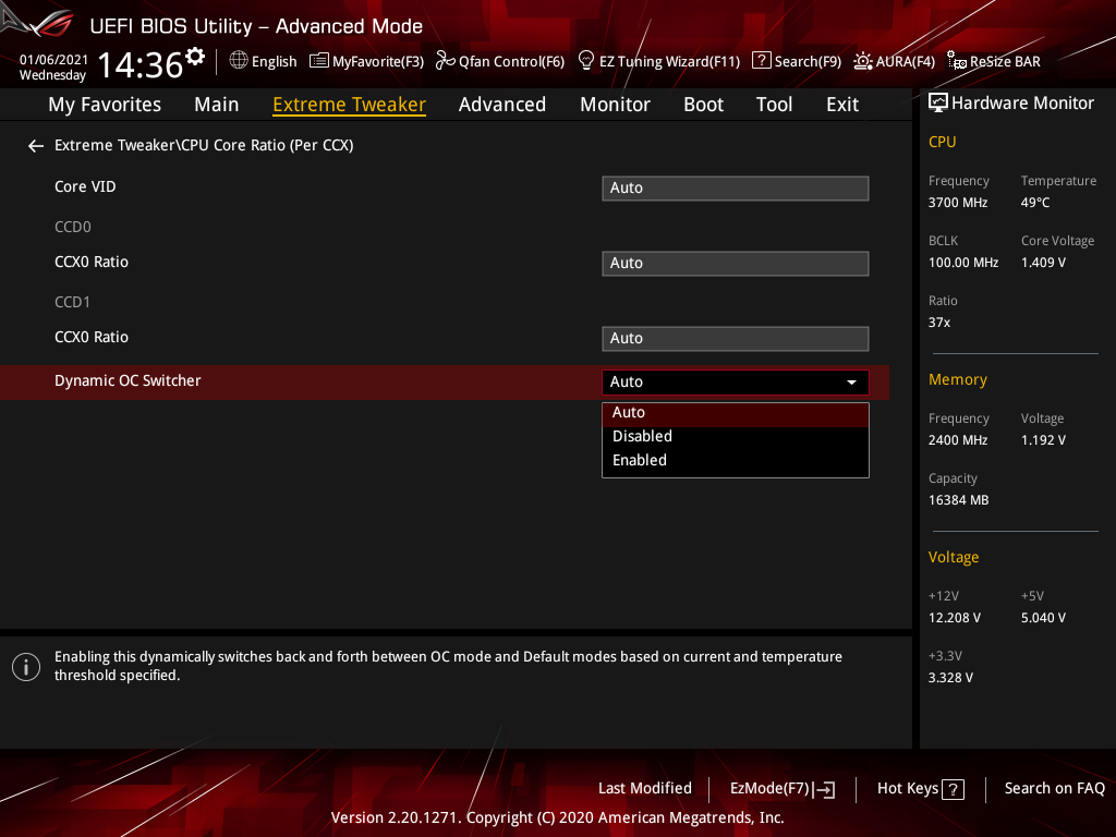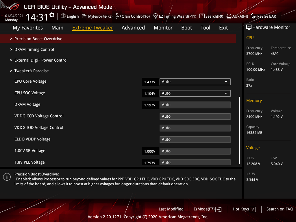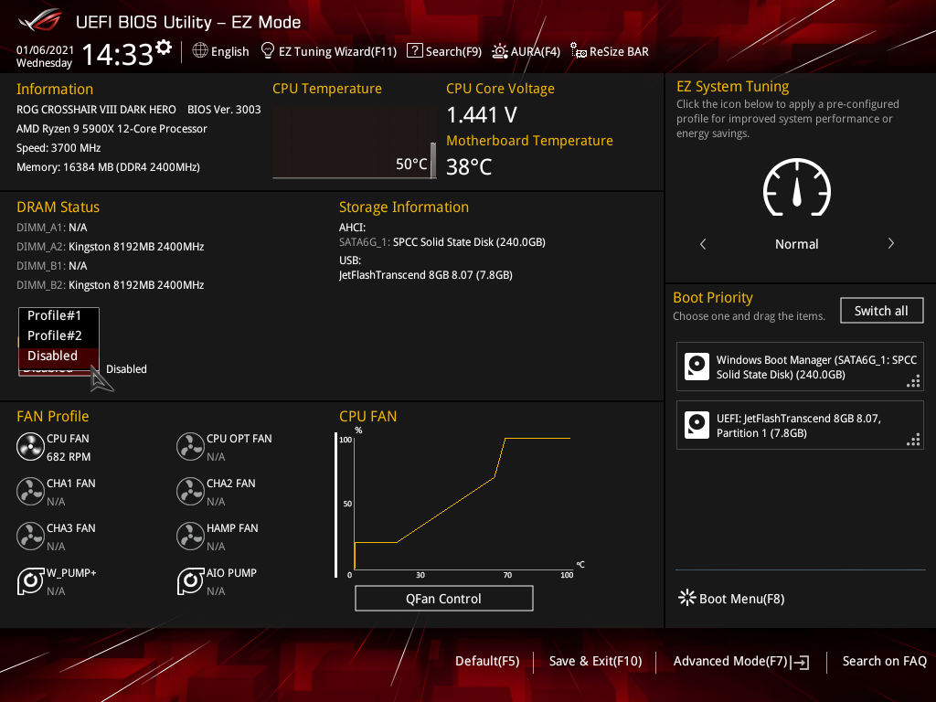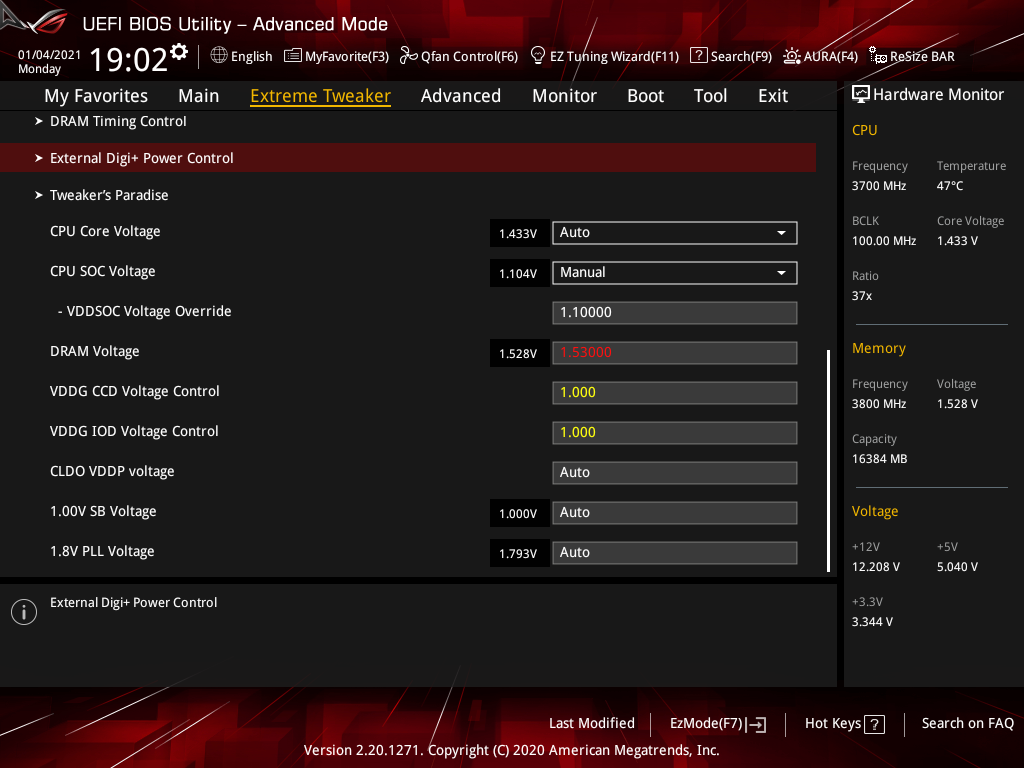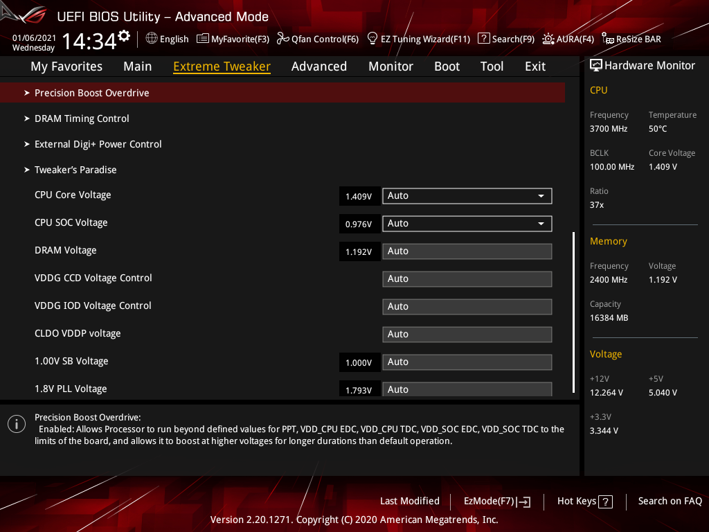 Активация XMP (D.O.C.P.): Memory Frequency — 3466 МГц, DRAM Voltage — 1,35 В, SOC Voltage — 1,08 В.
