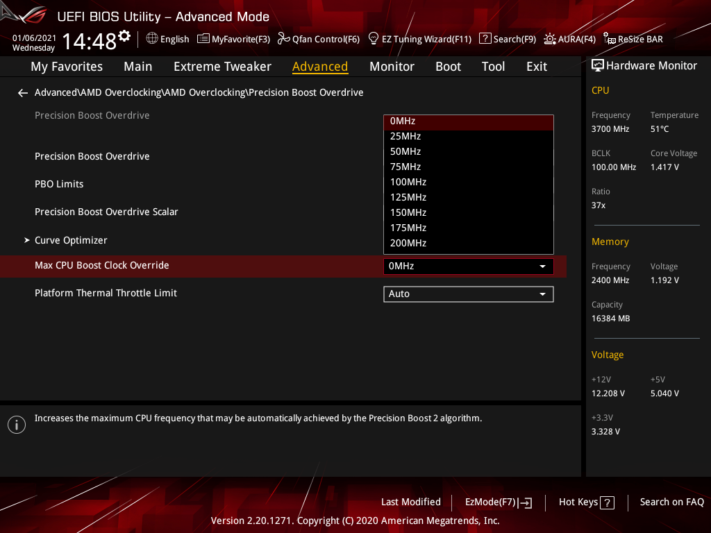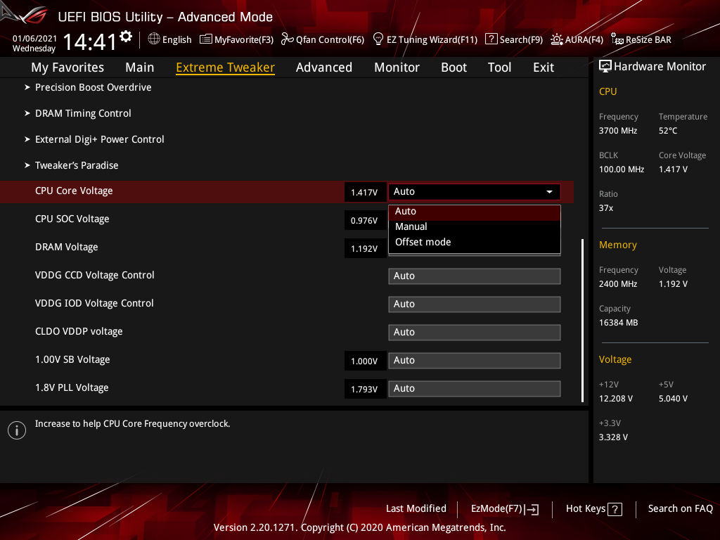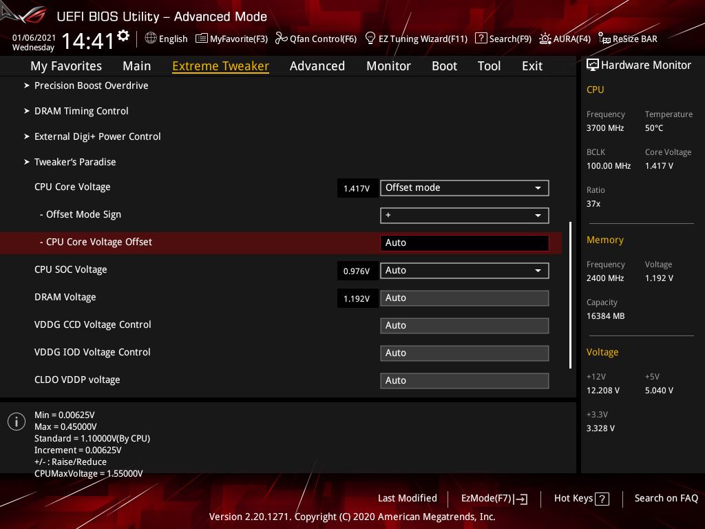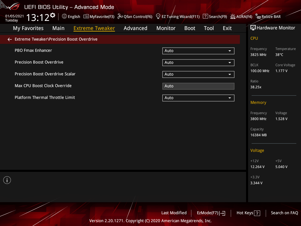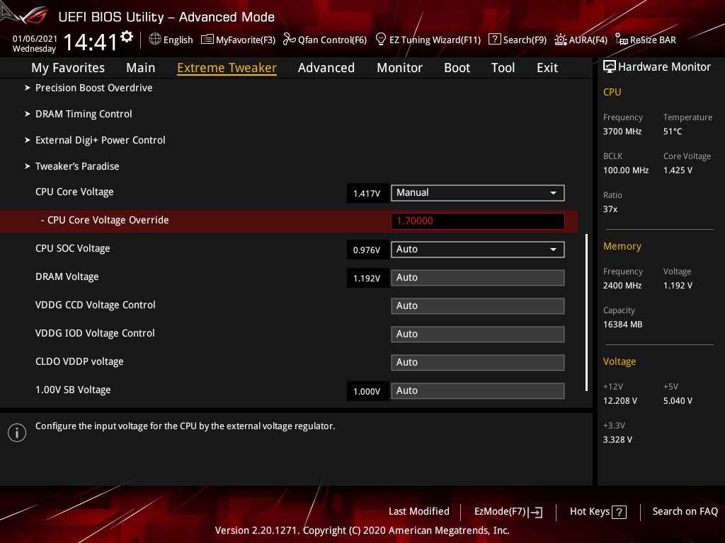 | CPU Core Voltage Override (В) | 0,75–1,70 | 0,00625 |