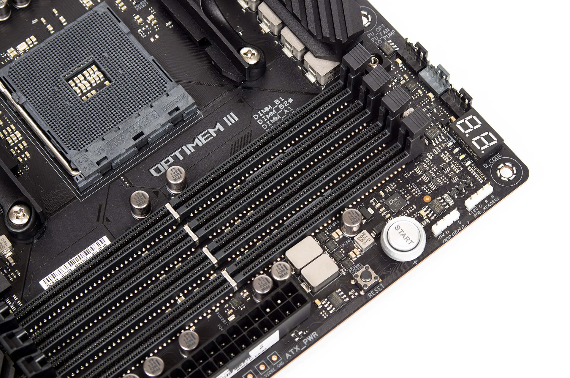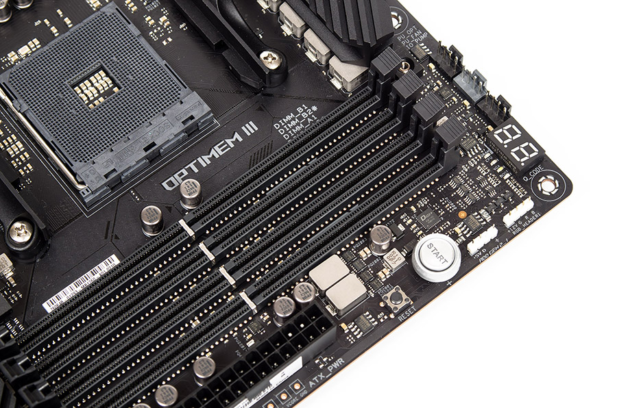 Индикатор кодов POST использует красный цвет, ничего другого он показать не сможет. Ниже него находится комплекс Q-LED из четырёх разноцветных светодиодов. Кнопка пуска системы подсвечивается белым цветом.