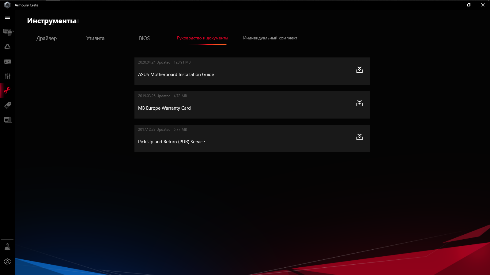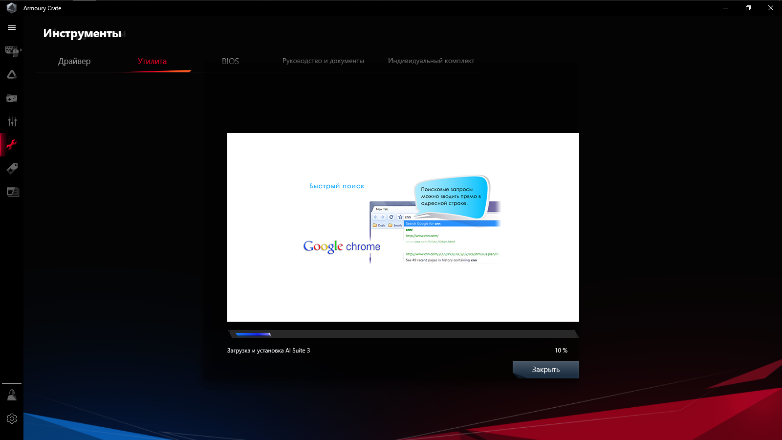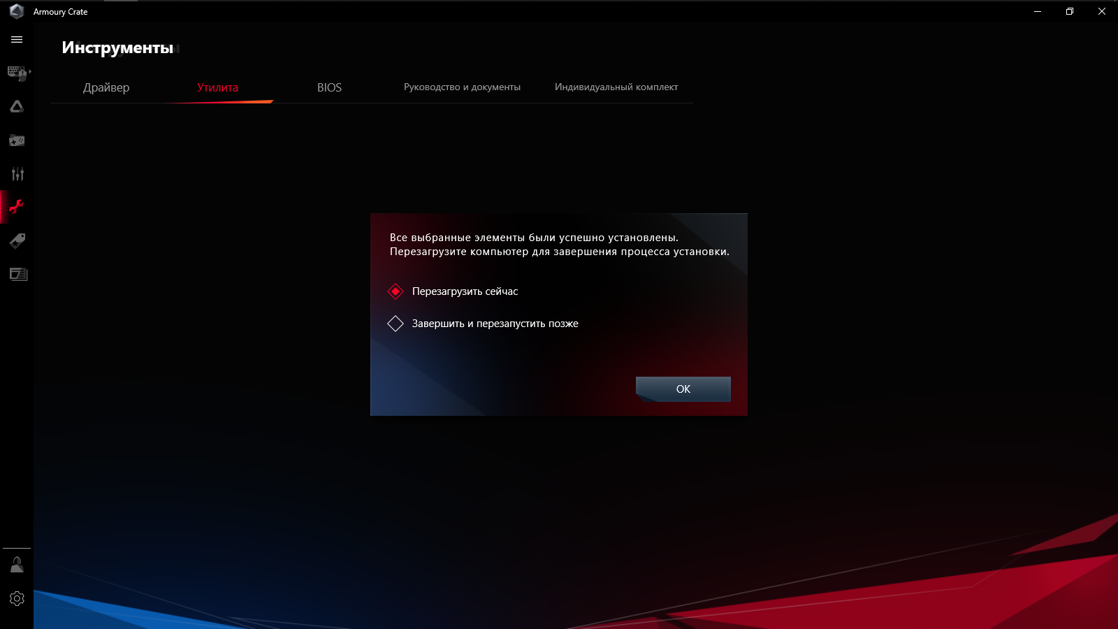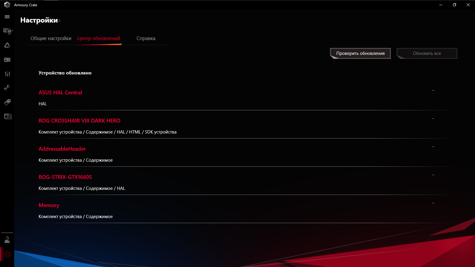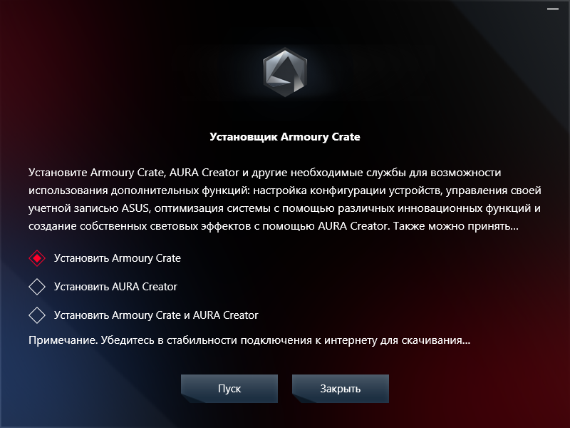 Armoury Crate стал основным программным комплексом, работа над ним ведётся постоянно, в частности, процесс установки и удаления теперь проходит более прозрачно, чем прежде. Первая загрузка Рабочего Стола Windows сопровождается приглашением к установке среды, но принимать его не обязательно.
