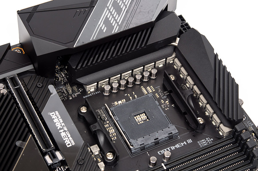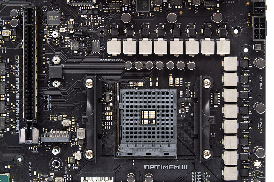 Зона вокруг сокета достаточно свободна для использования самых разных систем охлаждения, радиатор VRM приземист.