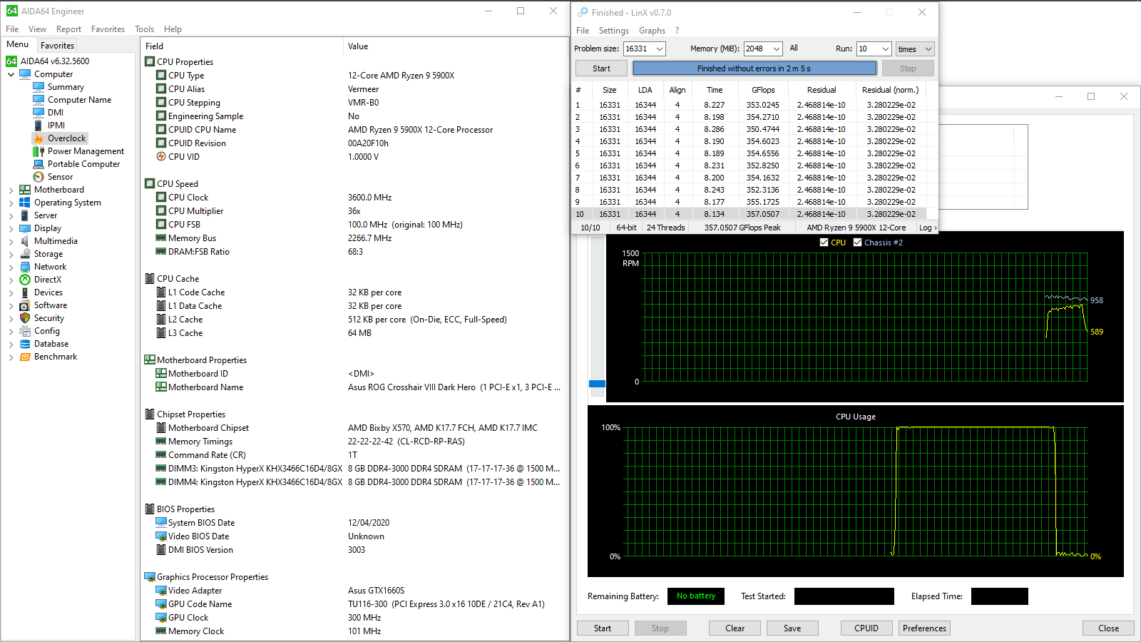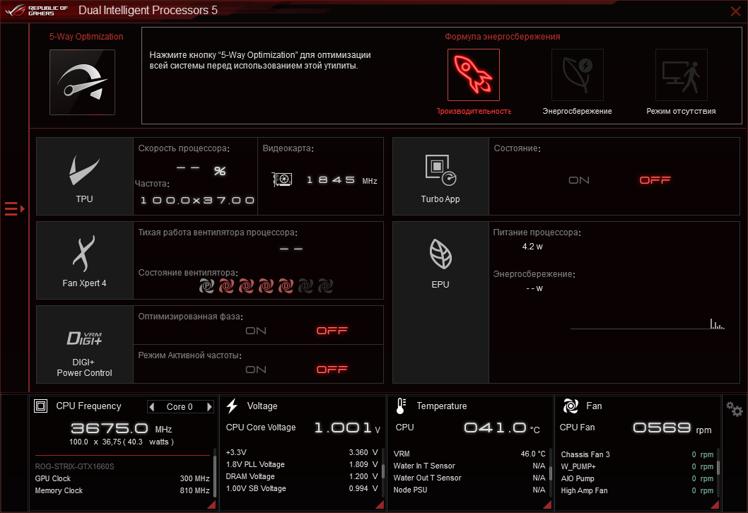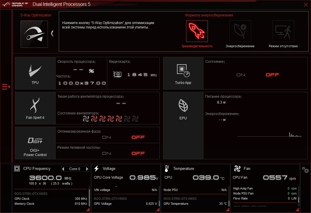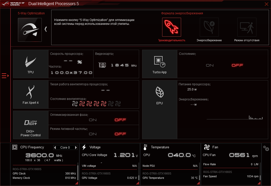 - видеокарта: ASUS ROG-STRIX-GTX1660S-O6G-Gaming (Performance mode);