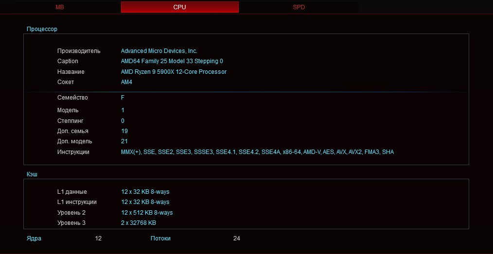 - процессор: AMD Ryzen 9 5900X (3,7 ГГц);
