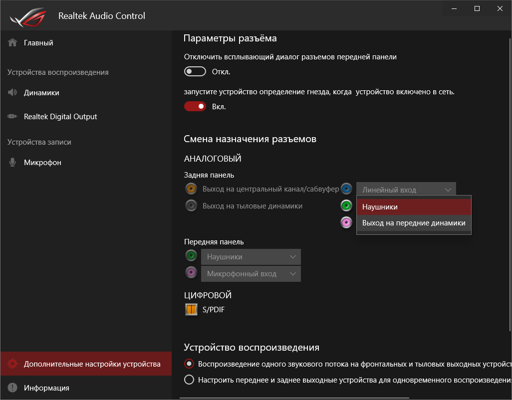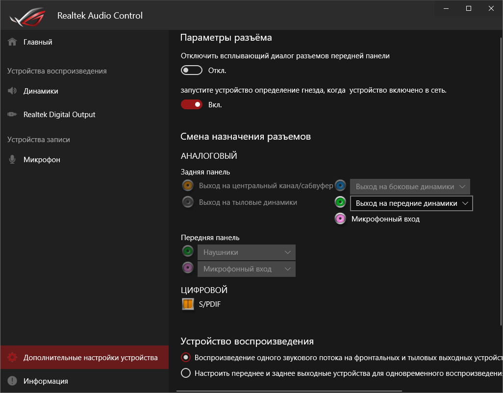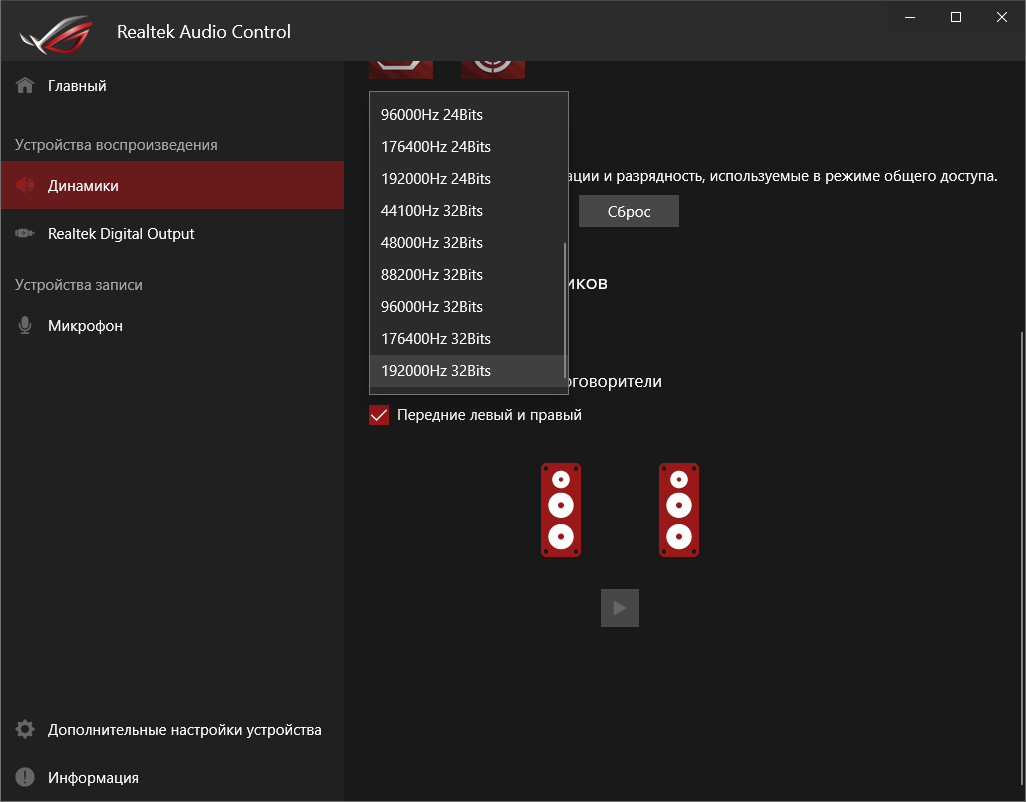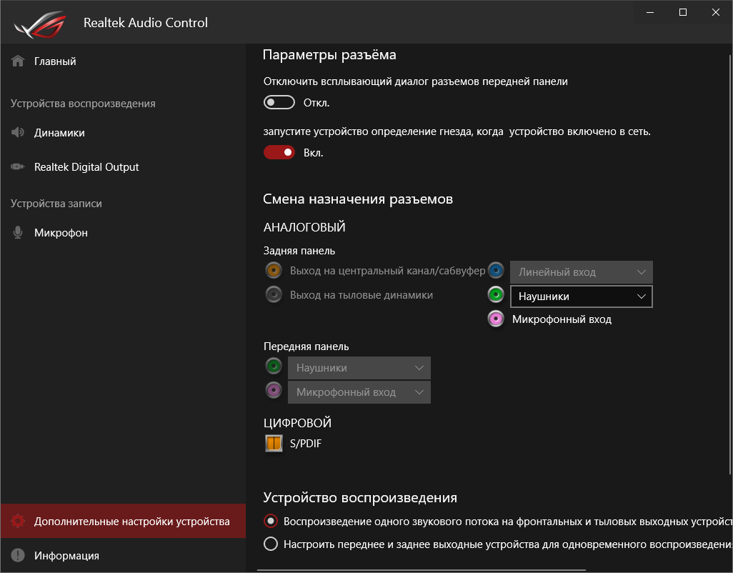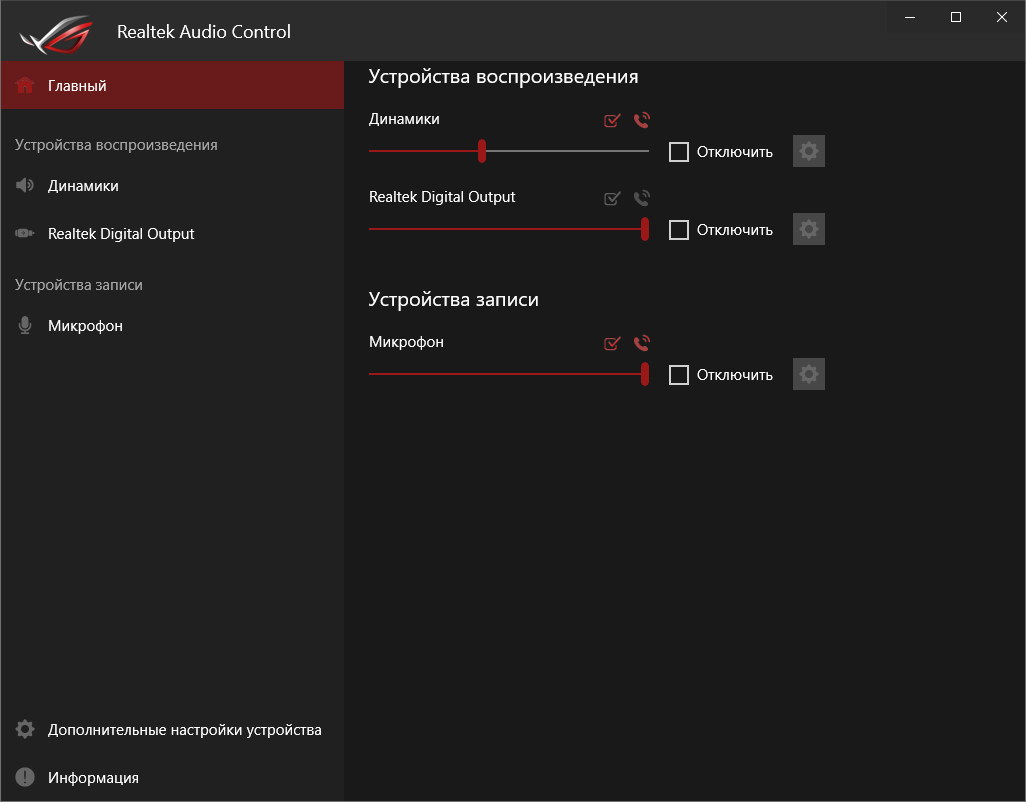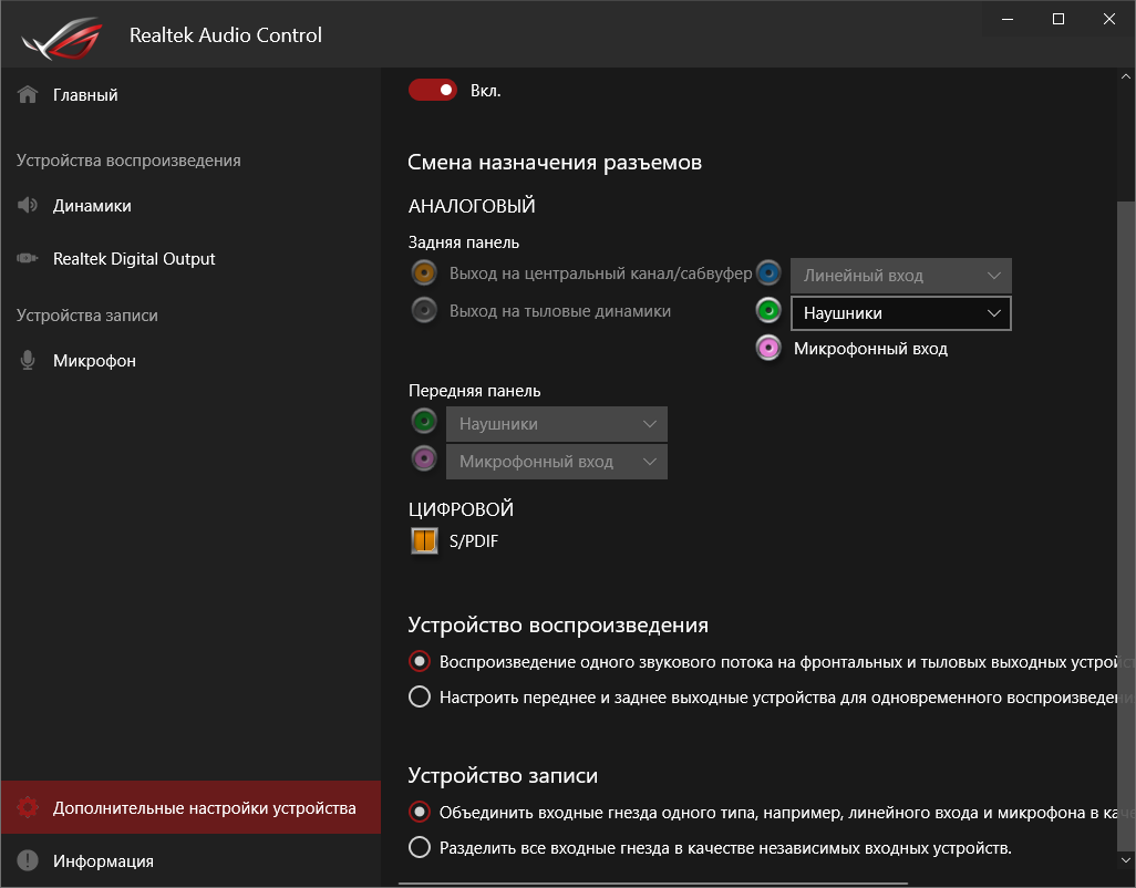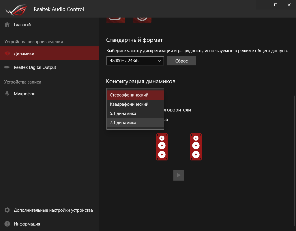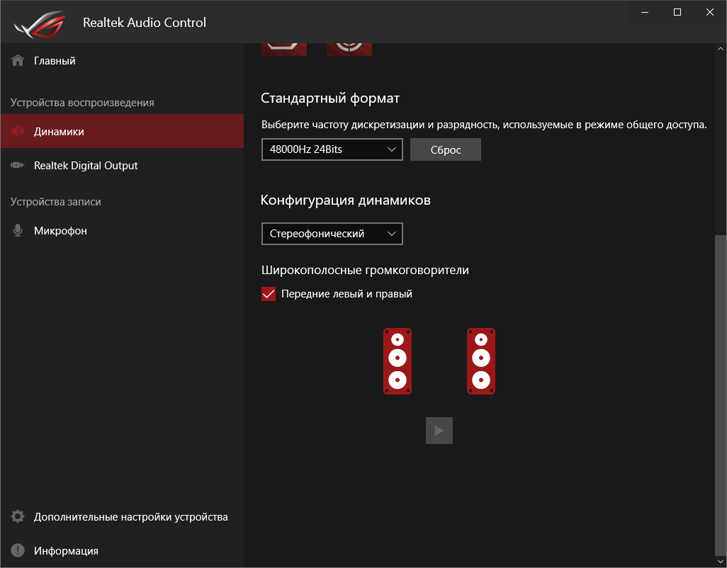 Базовая наладка звучания проходит при участии фирменной среды от Realtek. Выделить можно профили для предусиления выходного сигнала, которые действительно работают.