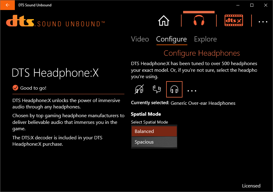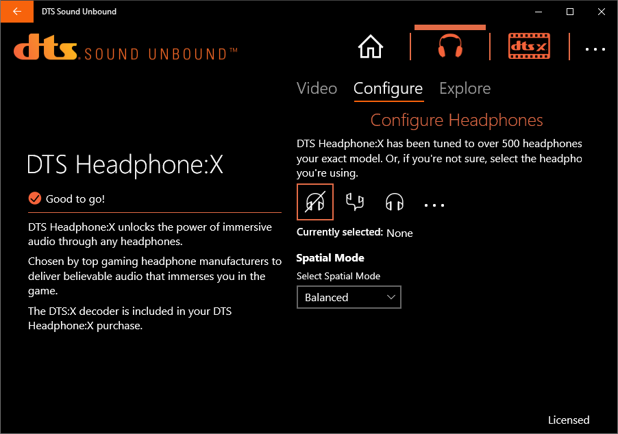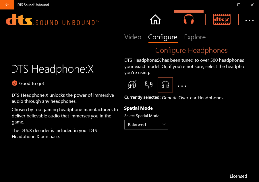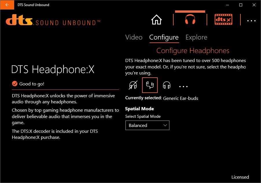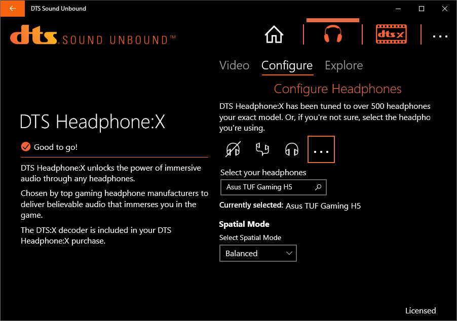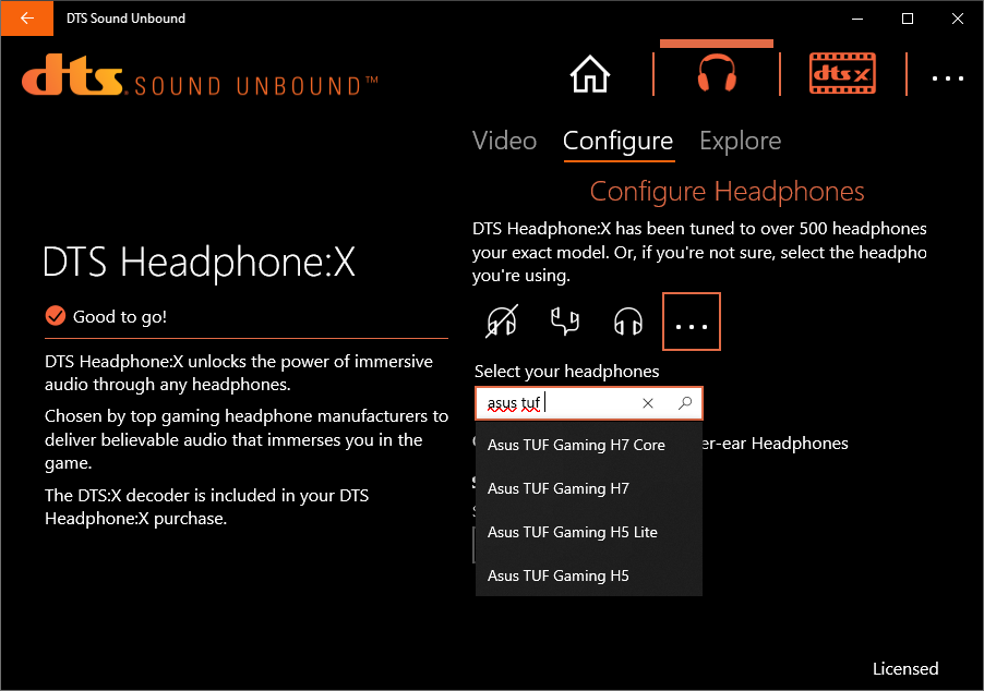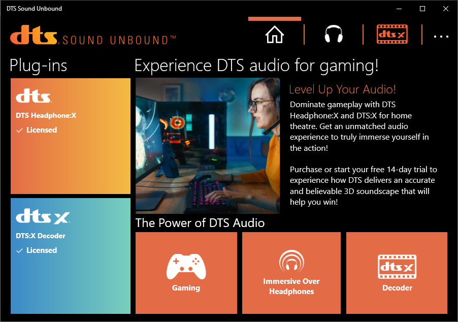 Ещё один бонус в лице DTS Sound Unbound предназначен для усиления погружения в обстановку путём выбора индивидуального профиля для наушников, база здесь действительно обширная, но также есть и пара типичных конфигураций.