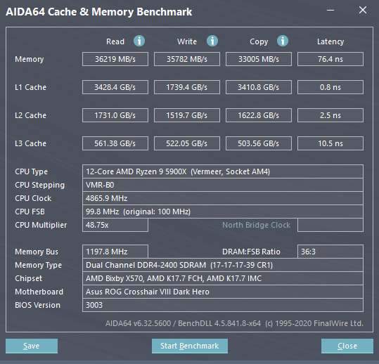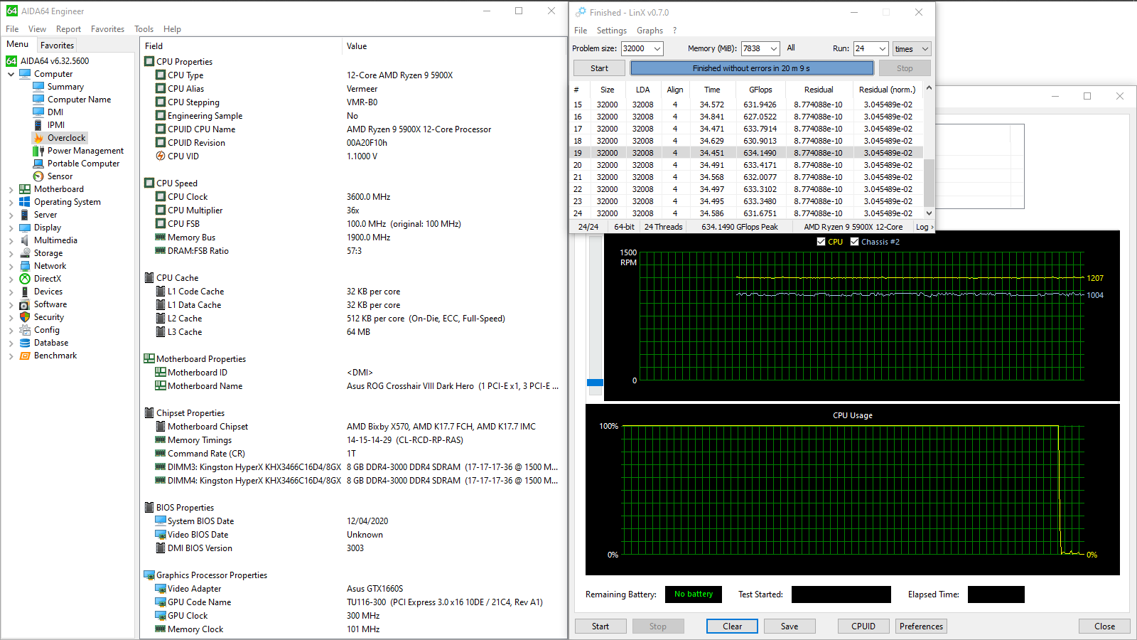 GFlops Peak — 634,15. AIDA64 Cache & Memory Benchmark Latency — 54,4 ns. Memory Read — 59080 MB/s.