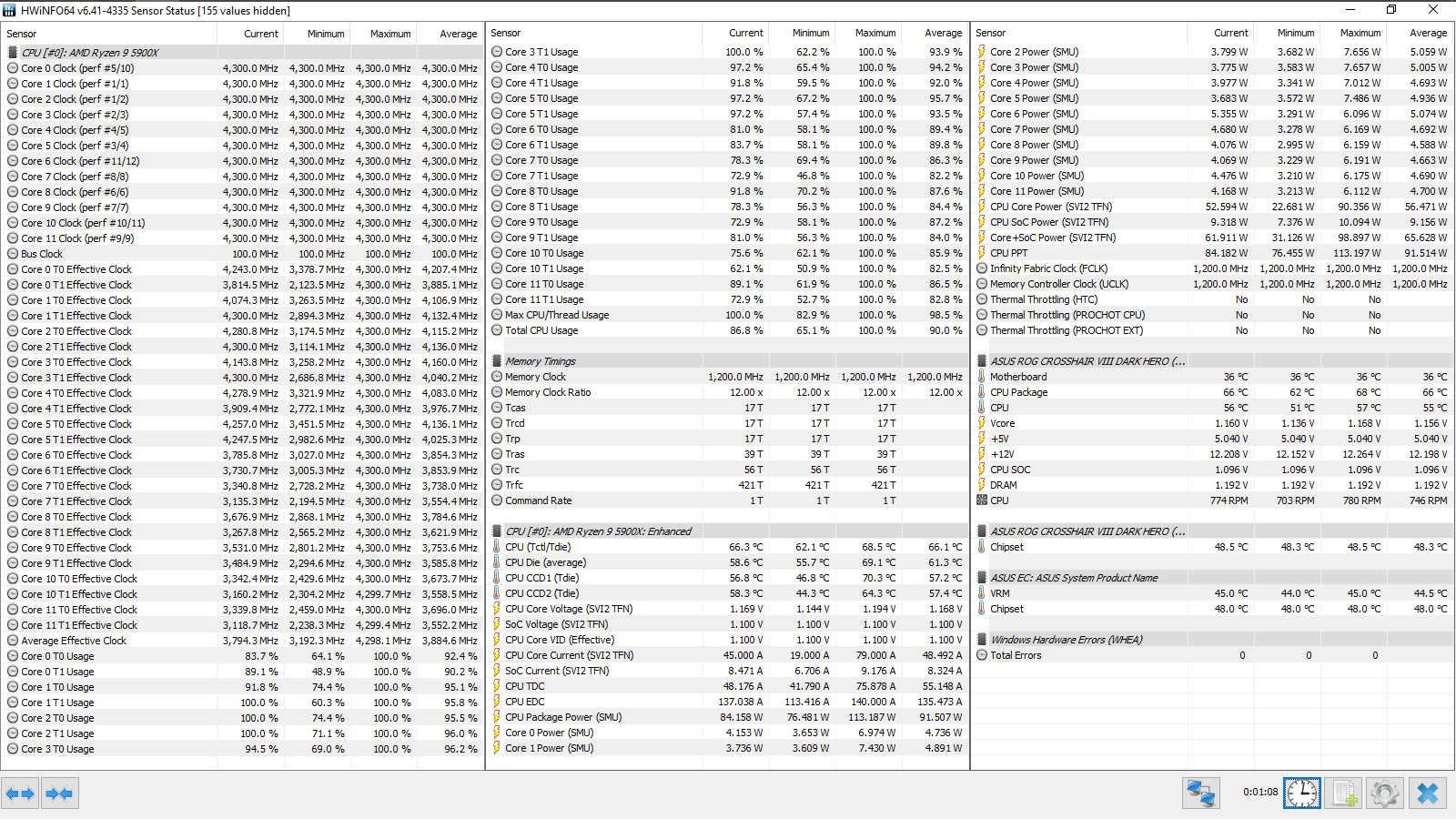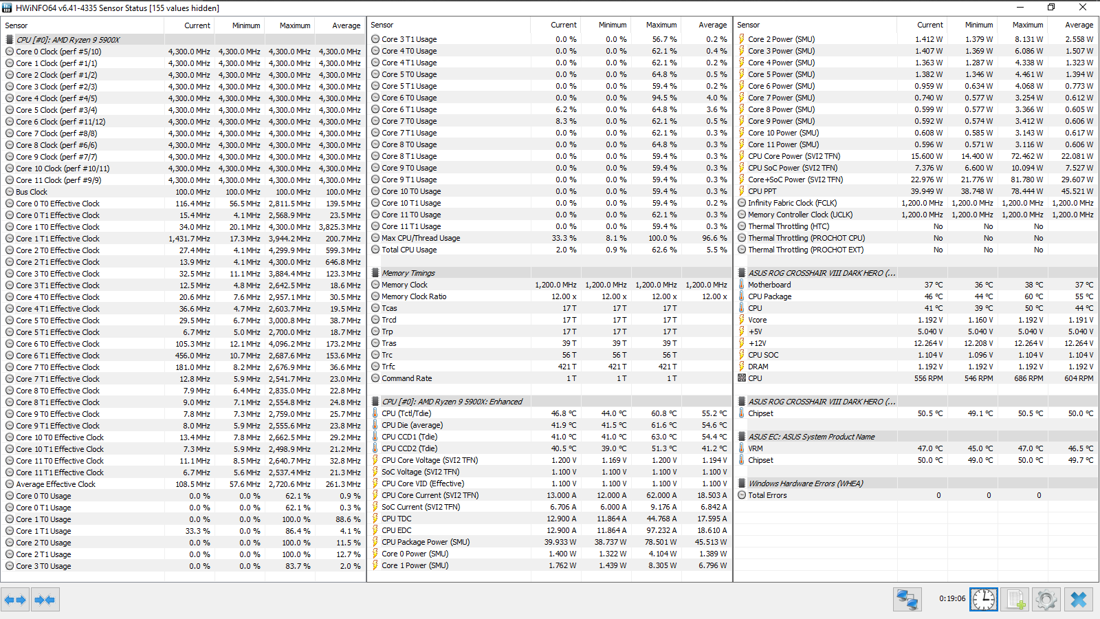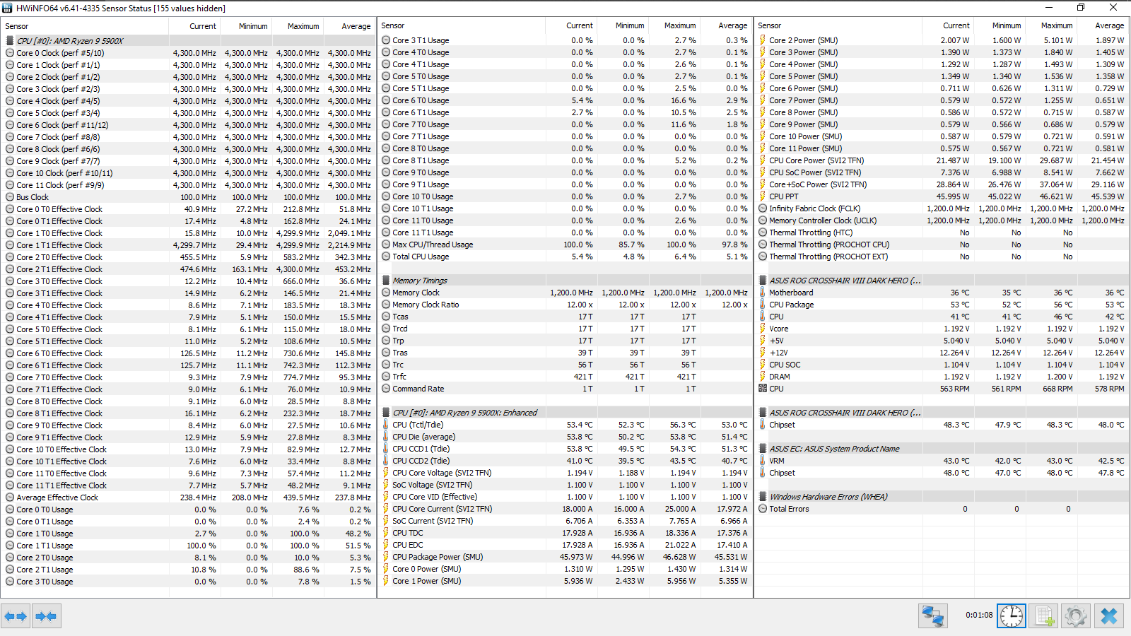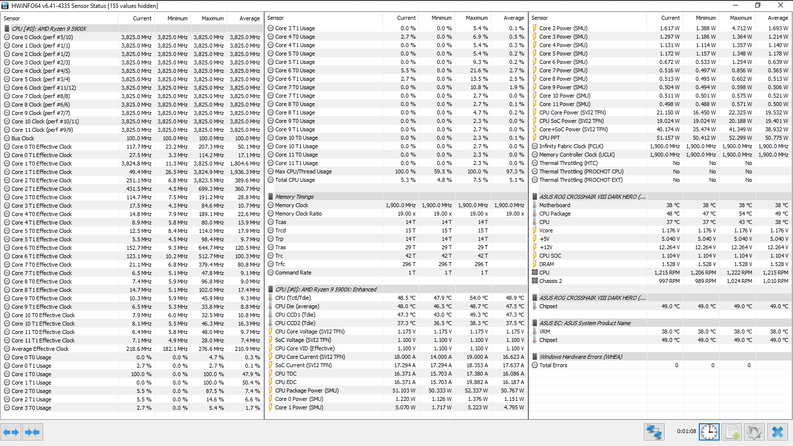 Все эксперименты проводились с прошивкой 3003 (AMD AGESA ComboAM4v2PI 1.1.8.0), обновление данных в HWiNFO64 происходило с периодичностью 500 мс (Pooling Period). Тест кадровой частоты FPS Benchmark в CS:GO запускался со следующими настройками — 1, 2.