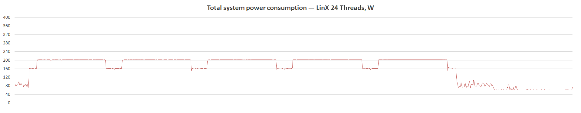 Граничные уровни потребления энергии — 83–180 Вт. Судя по всему, основной идеей является форсаж невысокого напряжения, это снижает и температуру ЦП, и его энергопотребление. Такой подход пригодится владельцам СО начального класса или тем, кого страшат высокие рабочие температуры.