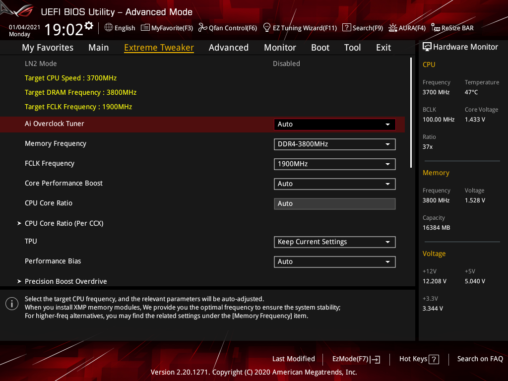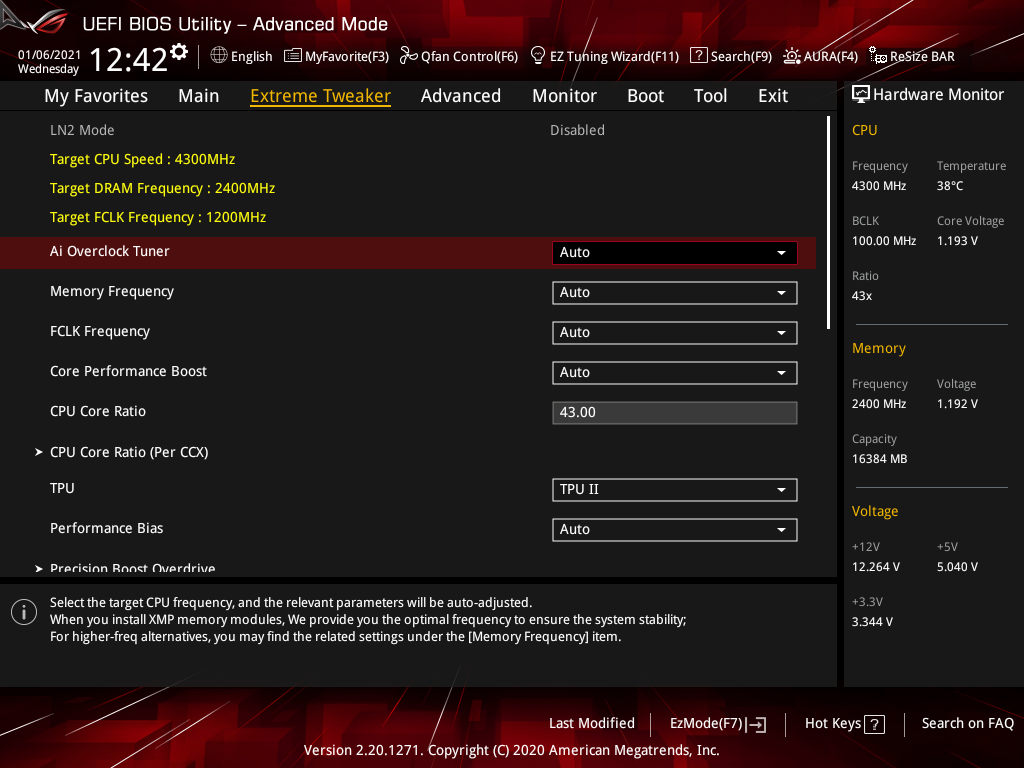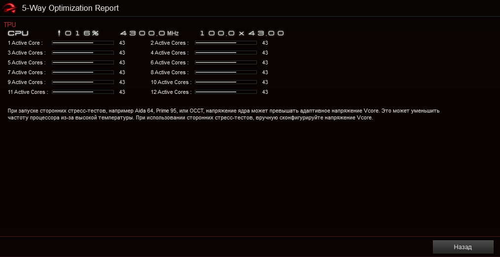 Фирменный разгон. В среде UEFI доступно лишь два готовых профиля TPU, потому я использовал мастер DIP 5 из среды Ai Sute 3, сборка загружалась со страницы поддержки (3.00.67). Но в области модификации частоты и здесь ничего более значимого не произошло. Возможно, необходимо дождаться обновлений.