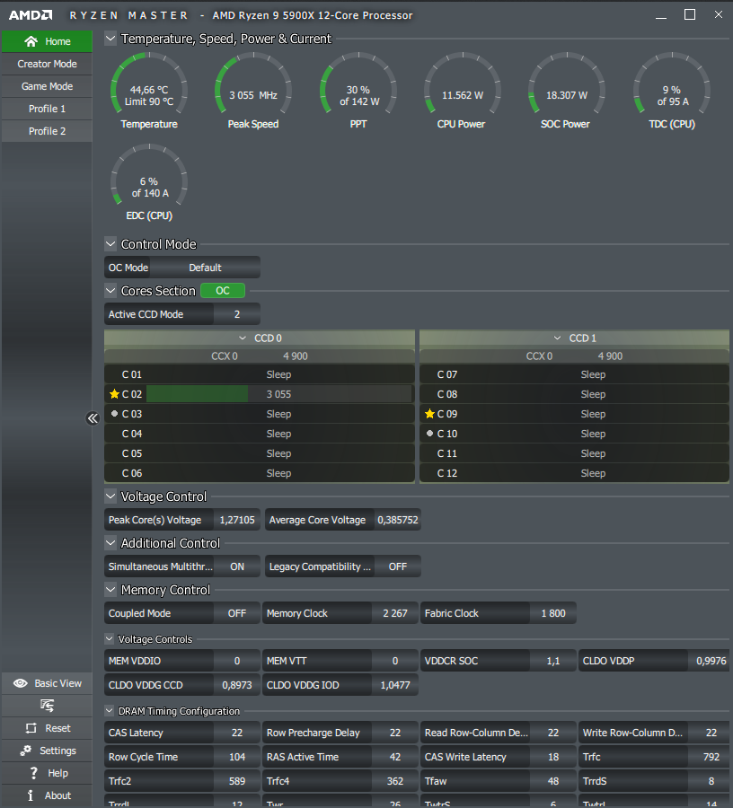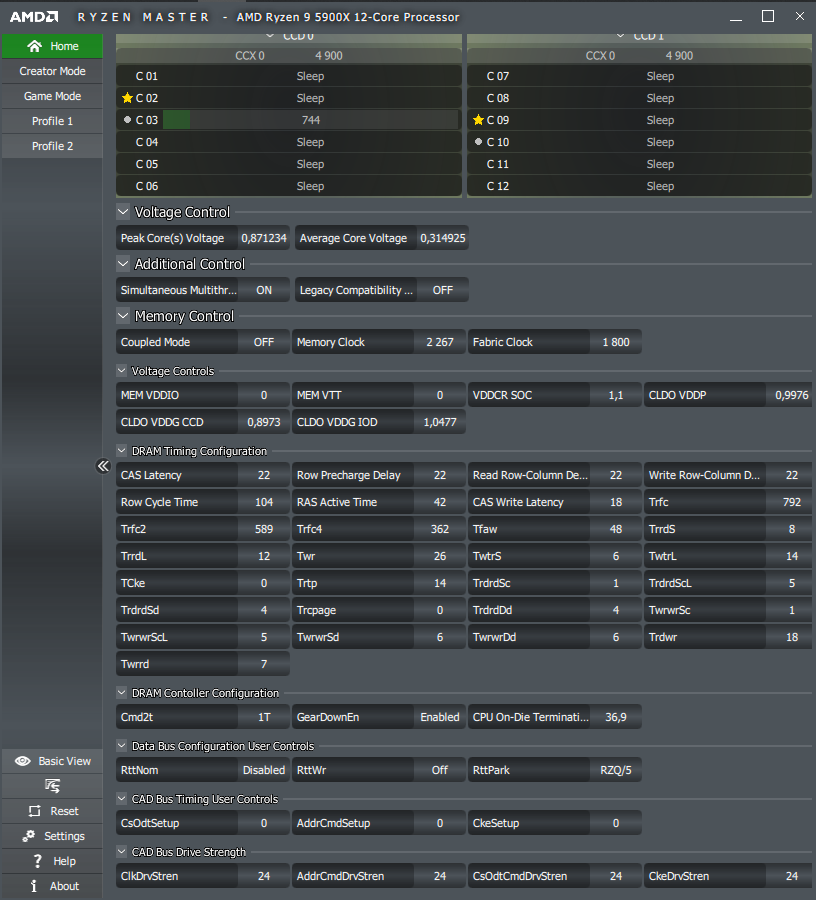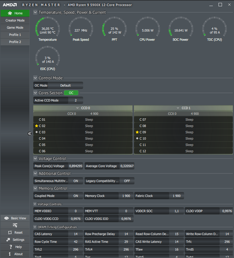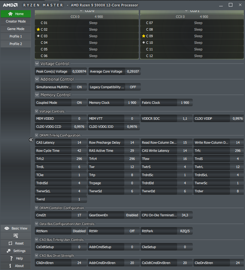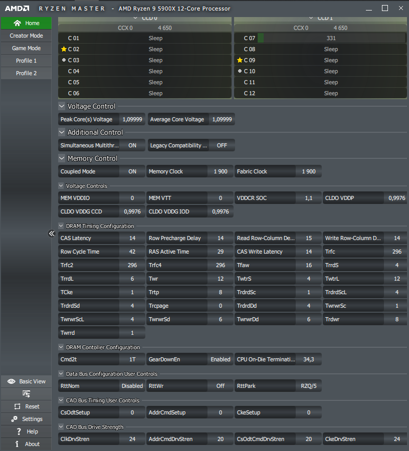 Форсаж второго по счёту профиля TPU знаменует использование x43 для CPU, а первый снизит множитель до x42, что соответствует скорее возможностям процессоров поколения Matisse, нежели современных Vermeer. DRAM оставили без внимания.