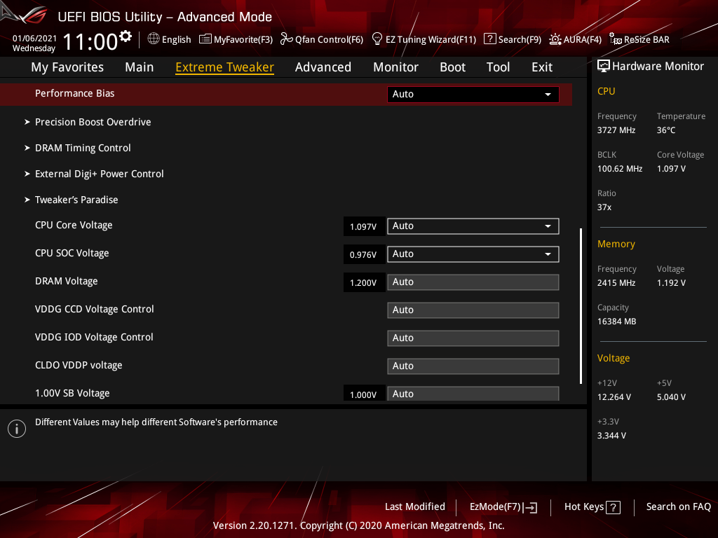 Структура разгонного раздела Extreme Tweaker изменений не претерпела, лишь исчезла секция с профилями Performance Enhancer.
