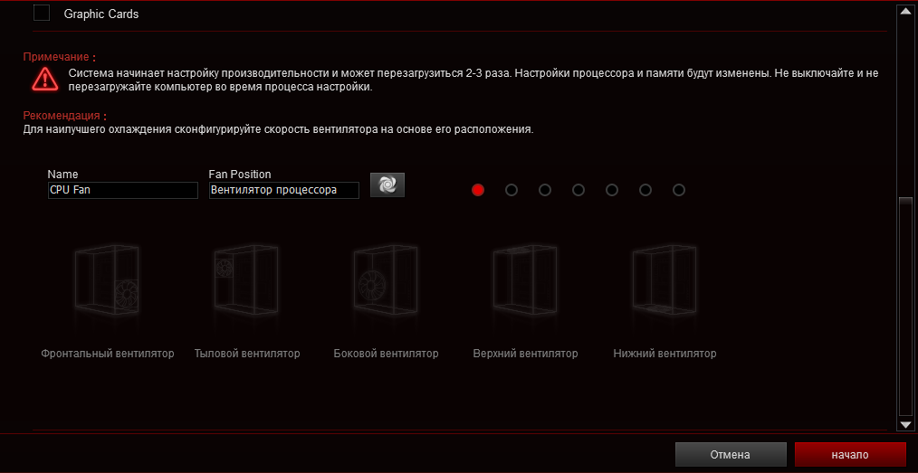 Fan Xpert 4 может использовать температуру ВК в алгоритмах по замедлению системных охладителей, но для этого она должна быть производства ASUS.