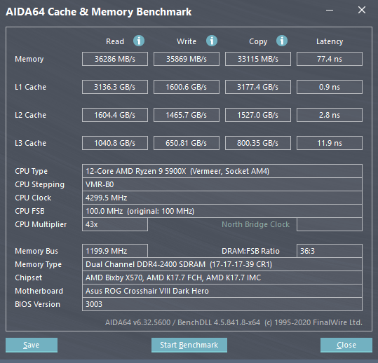 GFlops Peak — 328,71. AIDA64 Cache & Memory Benchmark Latency — 77,4 ns. Memory Read — 36286 MB/s.