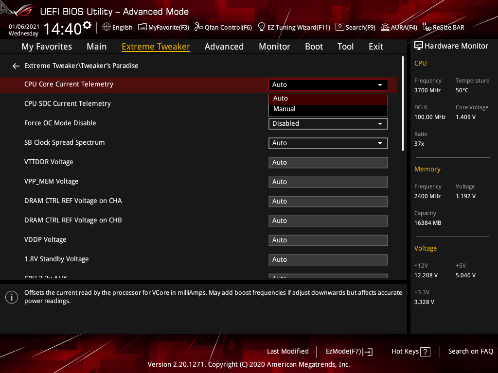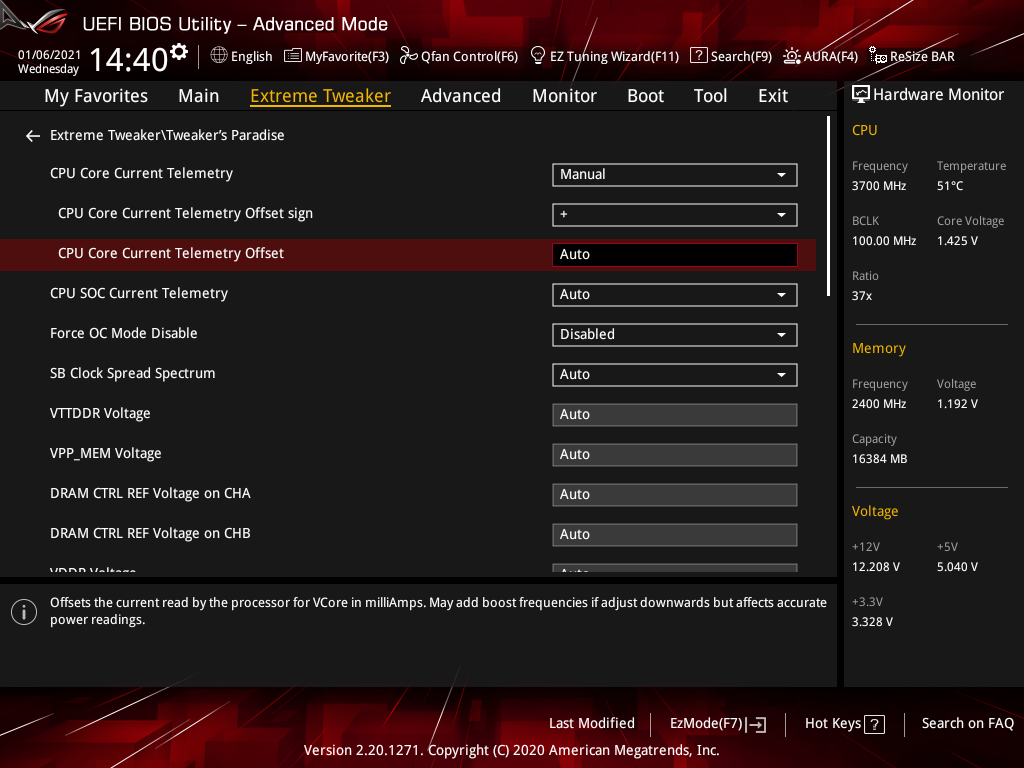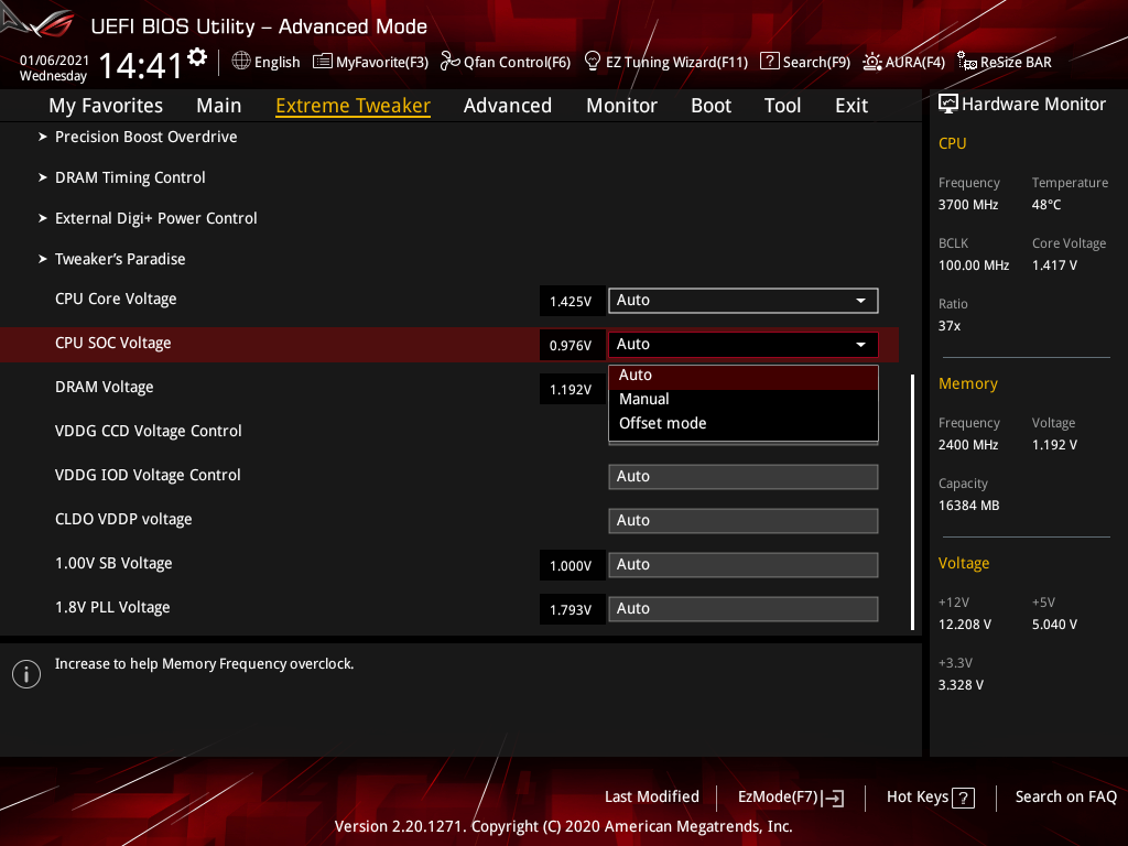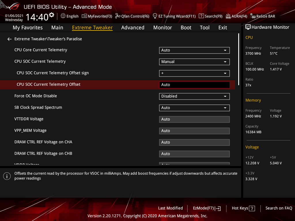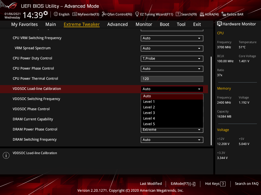 | VDDSOC Load-line Calibration | Auto/Level1…5 | 1 |