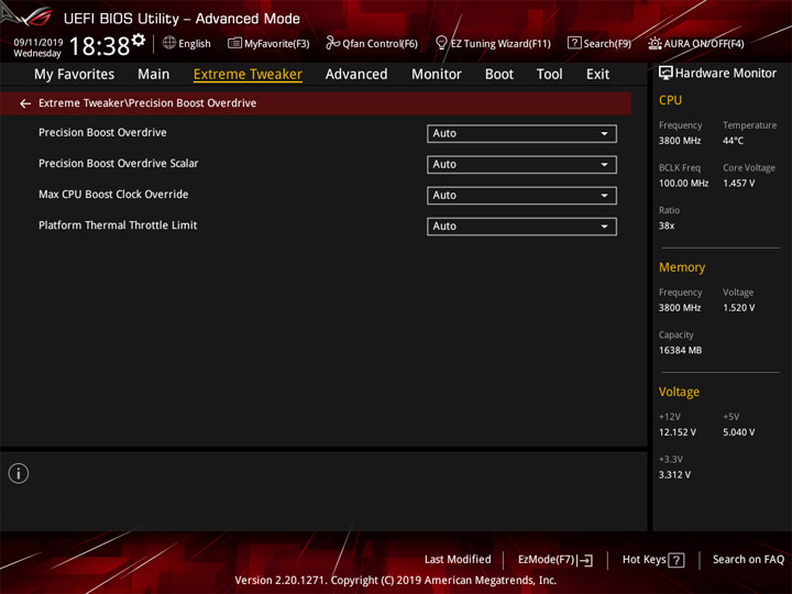 Наиболее яркое нововведение в свежей прошивке — раздел CPU Core Ratio (Per CCX). Значит, теперь можно будет выполнять разгон (или тонкую отладку предельных частот) для каждого блока ядер индивидуально, дабы самые способные не были сдержаны единой величиной с менее удачными. Кроме того, переработан набор профилей Performance Bias, где есть как минимум два под работу с многопоточными сценариями, отличные от штатной схемы, которые, очевидно, ярко проявляются в замерах при участии Cinebench R15. Предложен тут же и третий набор; словом, варьируя единственный пункт в UEFI, можно добиться разного поведения компьютера в отдельно взятом ПО.