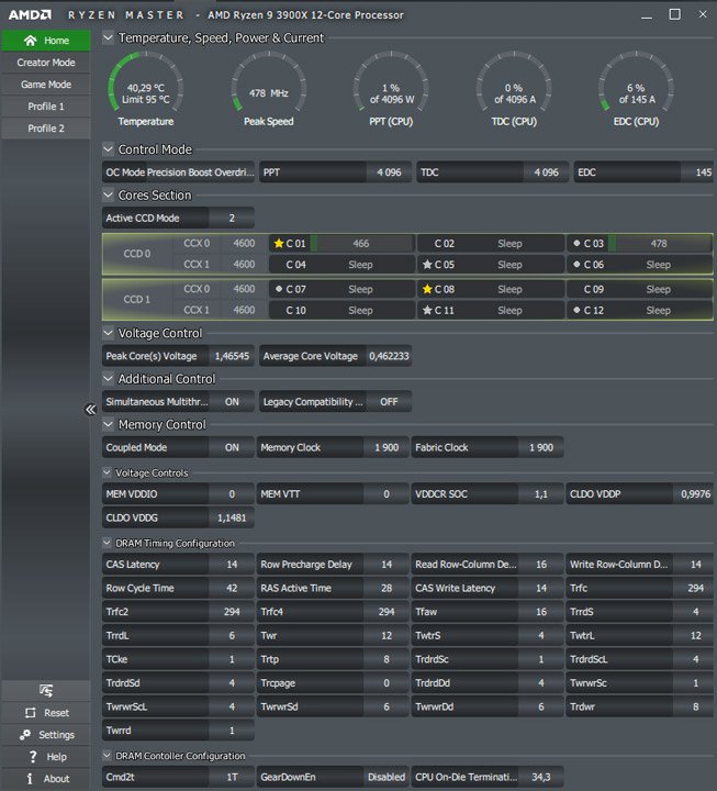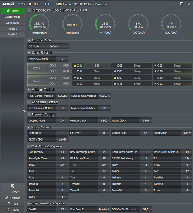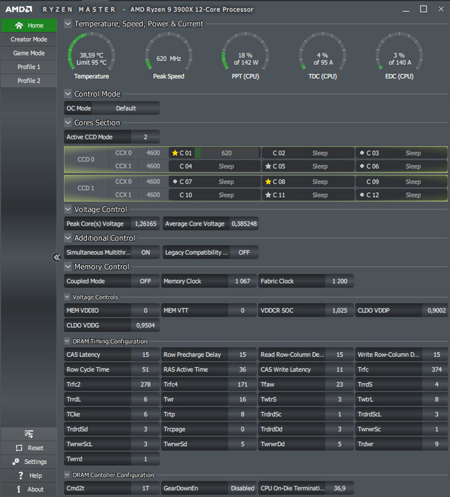 - операционная система: Windows 10 Pro x64 (10.0.18362.329), AMD Ryzen Balanced Power Plan, AMD Ryzen Master 2.0.2.1271;