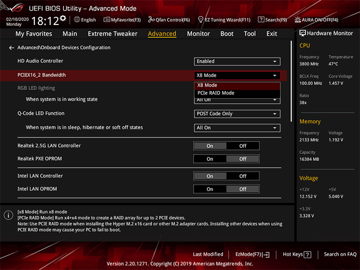 Нет сомнений в том, что перед нами достойный продукт, созданный для самых смелых экспериментов, включая различные экстремальные подходы с большими напряжениями и нетривиальными способами охлаждения. Все наработки инженеры оттачивают именно на топовой серии плат, ROG Crosshair восьмого поколения — та, что создавалась для процессоров AMD Matisse. Будущий владелец получит ультимативный по мощности блок стабилизации напряжений, имеющий глубокую проработку настроек в UEFI, в том числе и для напряжения DRAM. Заговаривая про память — предусмотрен ряд готовых разгонных профилей самого разного уклона: от рядового, повседневного, до предельного, созданного под бенчмаркинг. APU вынесли за скобки и предали забвению, видеовыходов здесь нет.