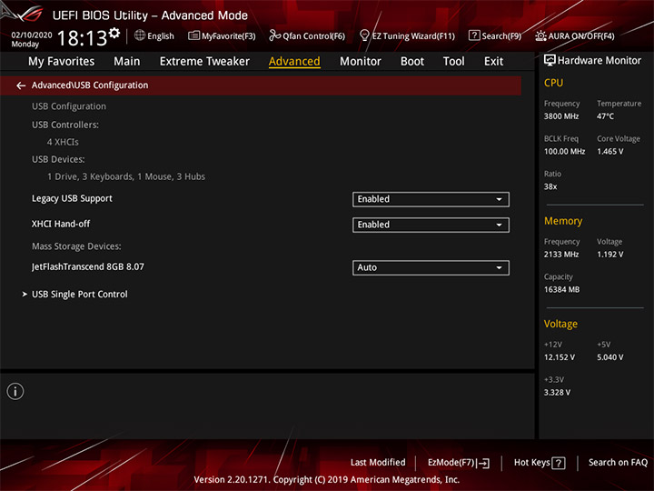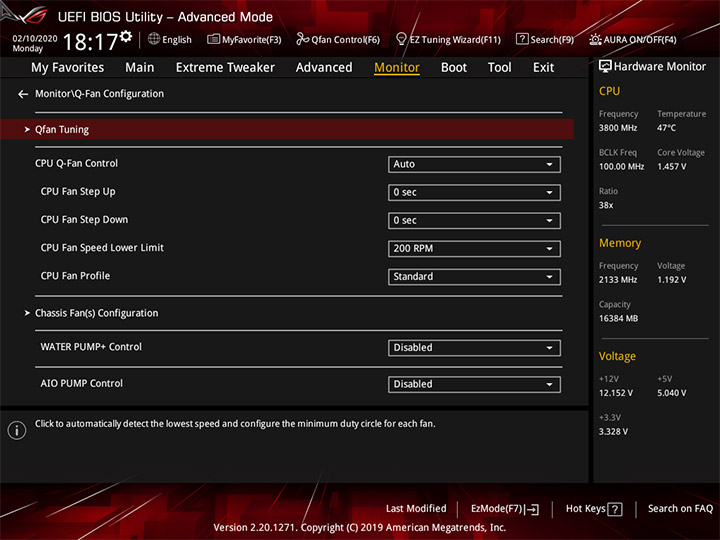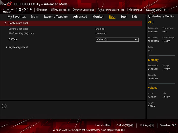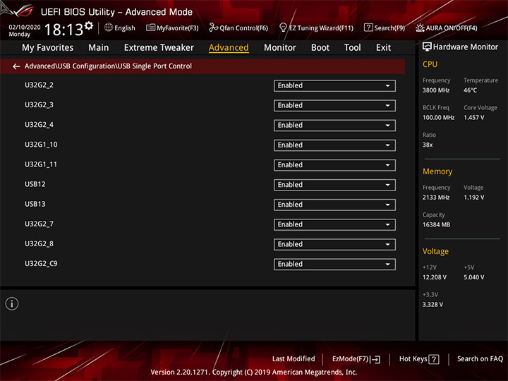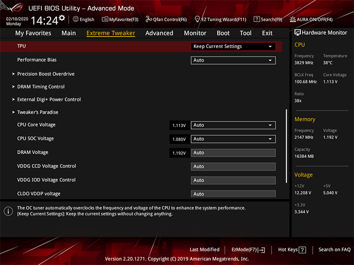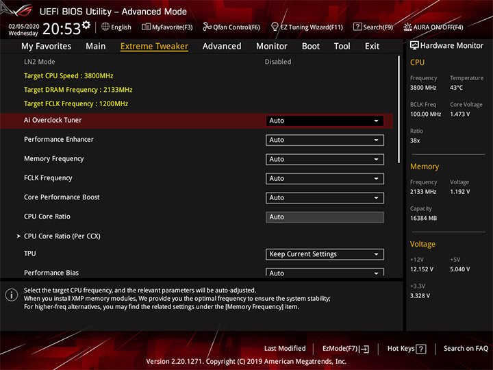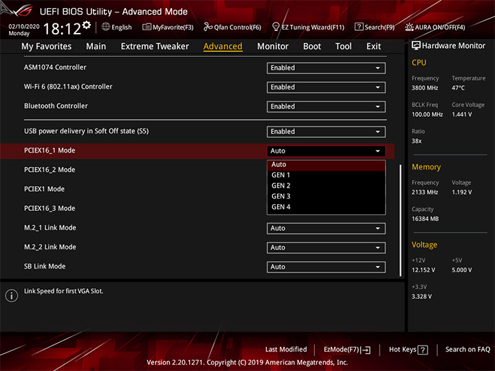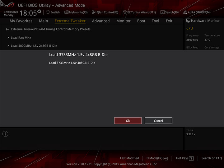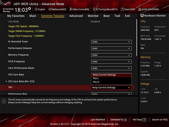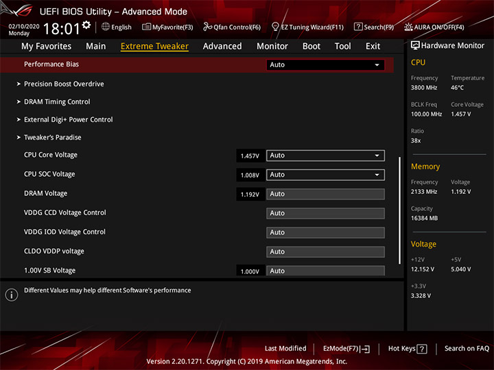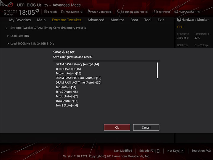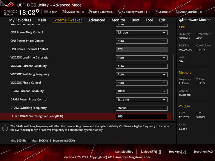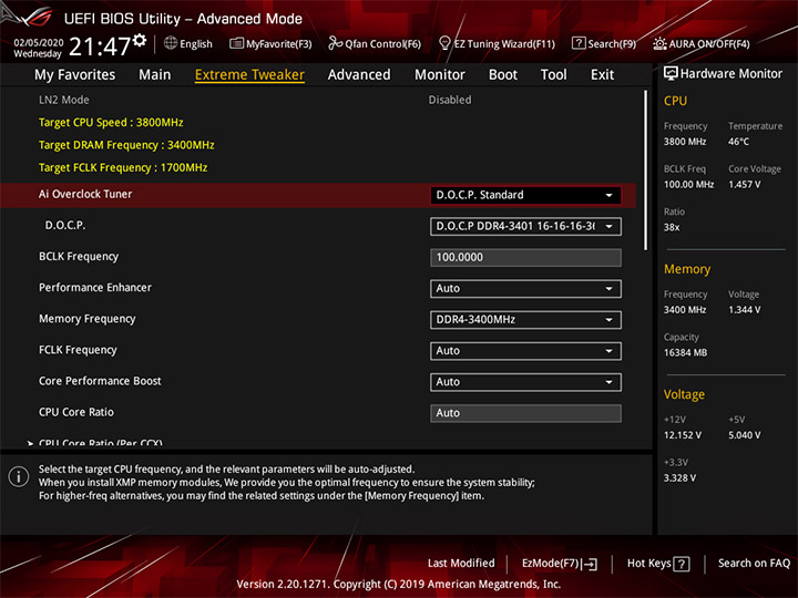 В отличии от подхода, используемого впервые при обзоре ROG Crosshair VIII Formula и далее на большинстве плат, сегодня ради форсажа частоты ОЗУ до 3800 МГц (1:1 с FCLK) вместе с ужатыми задержками понадобилось отказаться от динамической схемы работы ЦП (PBO), равно как это произошло при рассмотрении ASUS ROG Strix X570-I Gaming. Этим произошло объединение и с «тепловым» тестом системы, когда напряжение уровня 1,275 В сочетается с множителем x38.25 под нагрузкой в LinX.