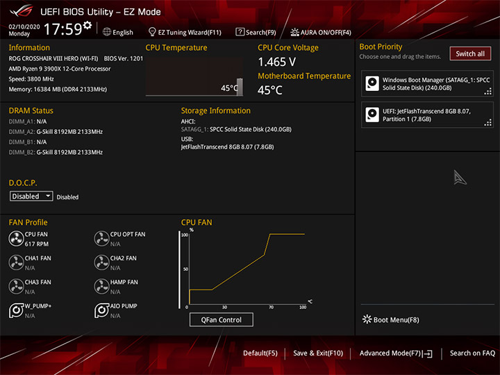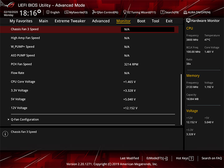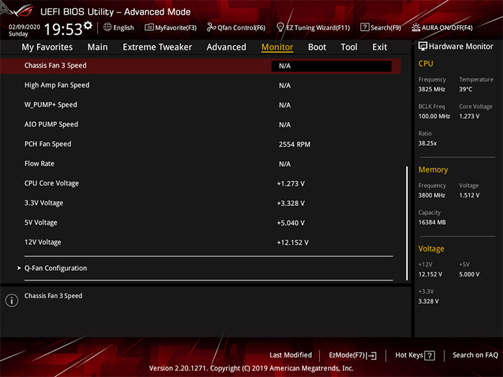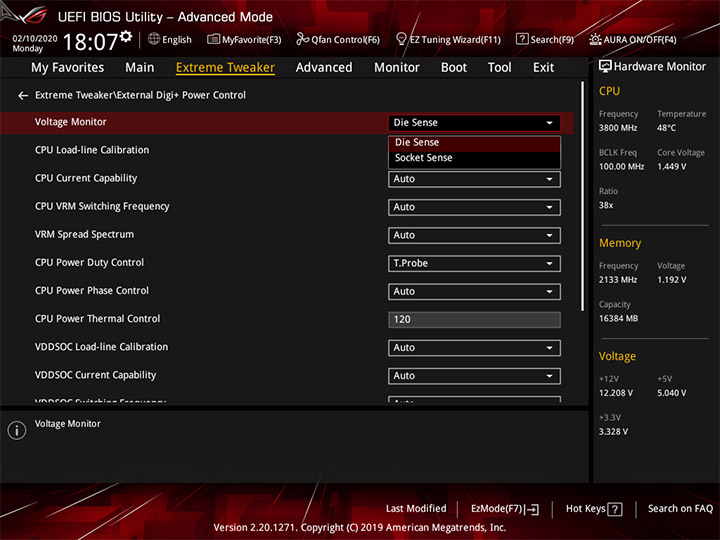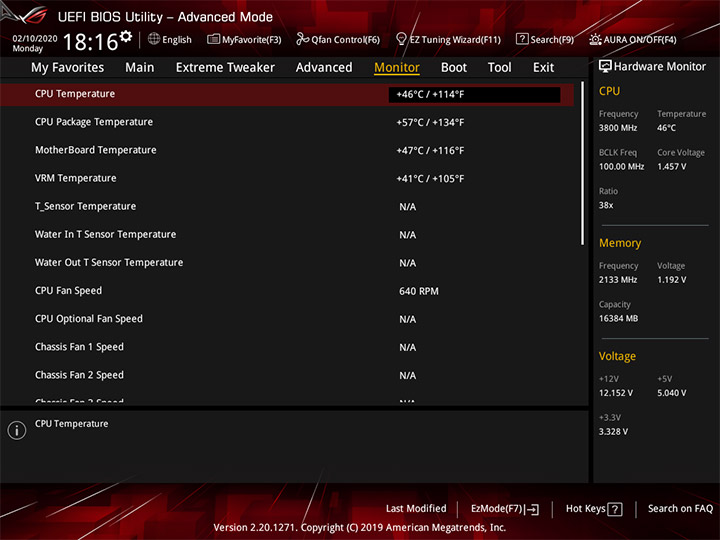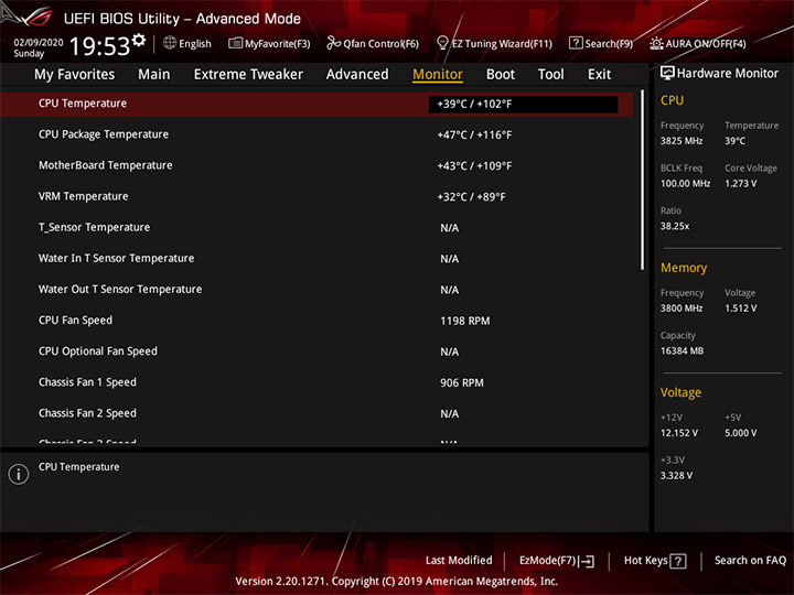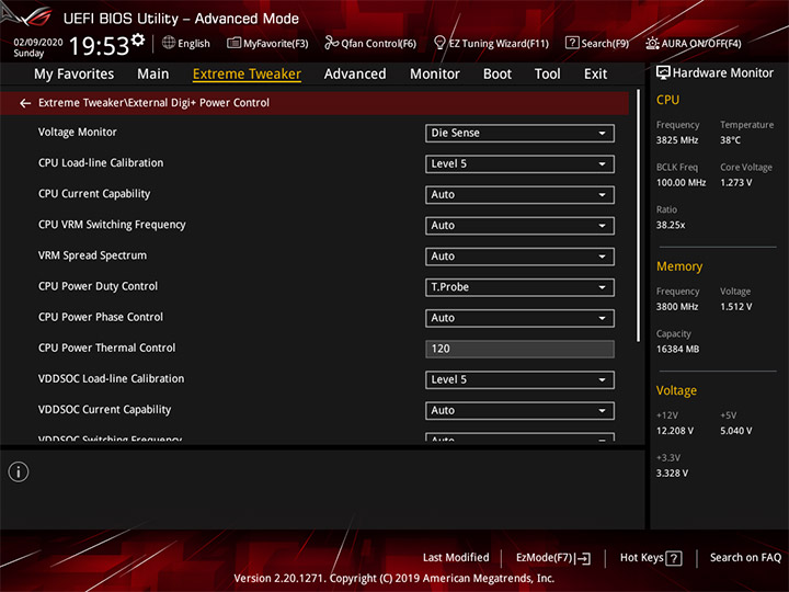 Вместе с тем, есть ряд моментов, которые кажутся по меньшей мере спорными. Отчего-то в комплекте поставки отсутствует термопара, хотя она же есть у более дешёвой ROG Strix X570-E Gaming. Индикатор кодов POST не сможет показать ничего кроме них, хотя ближайшие конкуренты предусматривают перевод функционирования этого модуля к отображению температуры процессора. Возможно, всё дело в том, что по мнению специалистов CPU Temperature ниже, чем CPU Package, вероятно, целью является задел для функционирования вентиляторов на чуть более низких скоростях. Температурный сенсор VRM не отображает максимального и даже медианного значения, показатели там занижены, и это не дежавю, а точная аналогия с процессорным вопросом. Про хаб и вспоминать не стоит, его роль на плате напрочь игнорируется, черпать информацию придётся через стороннее ПО, то есть привязать функционирование корпусных вентиляторов к этому узлу не получится, если не прибегать к использованию обходных путей (использованию внешней термопары). И если нет температуры, то нет и блока по управлению частотой вращения штатного вентилятора.