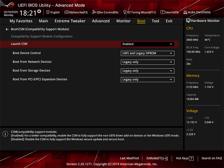 Изначально отключённый CSM позволяет ускорить процедуру опроса оборудования, относительно ближайших коллег по цеху она оказалась достаточно бодрой.