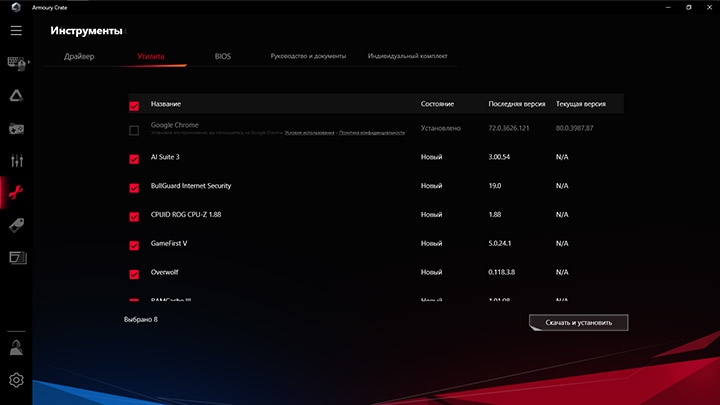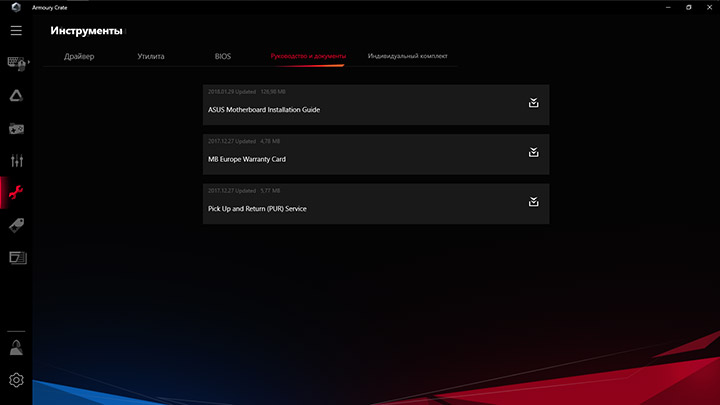 В качестве антивирусного ПО, которое доступно к загрузке в среде Armoury Crate, теперь предлагается BullGuard IS, в остальном отличий от других высокоуровневых продуктов производителя нет.