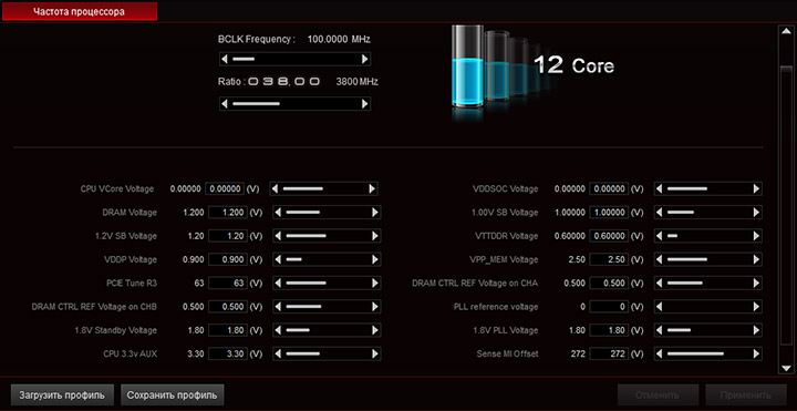 | CPU Core Voltage Offset (В) | (+/–) 0,00625–0,45 | 0,00625 |