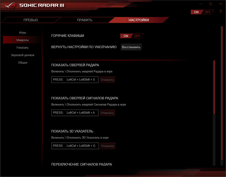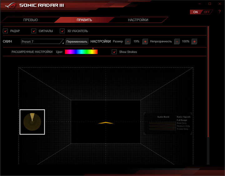 Более обширные эксперименты со звучанием позволяет проводить бонусное ПО в лице Sonic Studio III, там есть несколько схем, которые можно будет модифицировать, расставляя акценты на необходимых компонентах в звуковом потоке. Здесь же имеется рубрика и для работы с микрофоном. Активным игрокам пригодится Sonic Radar III.
