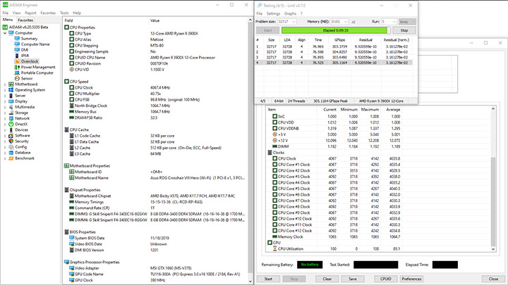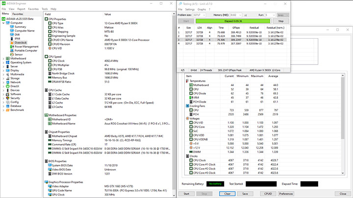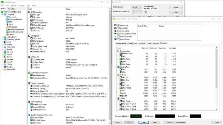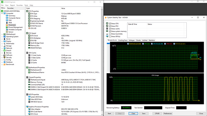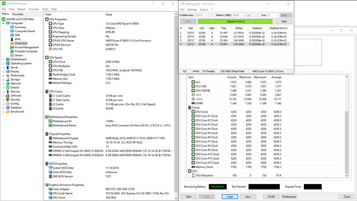 Это позволило сделать несколько снимков экрана, но оказалось, что плата самостоятельно деактивировала PBO и потому на красивую величину частоты ЦП, выросшую из-за этого, выйти не получилось.