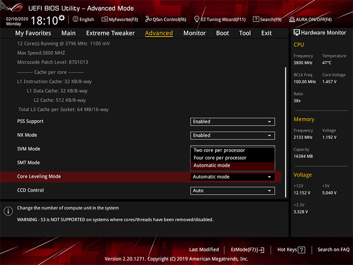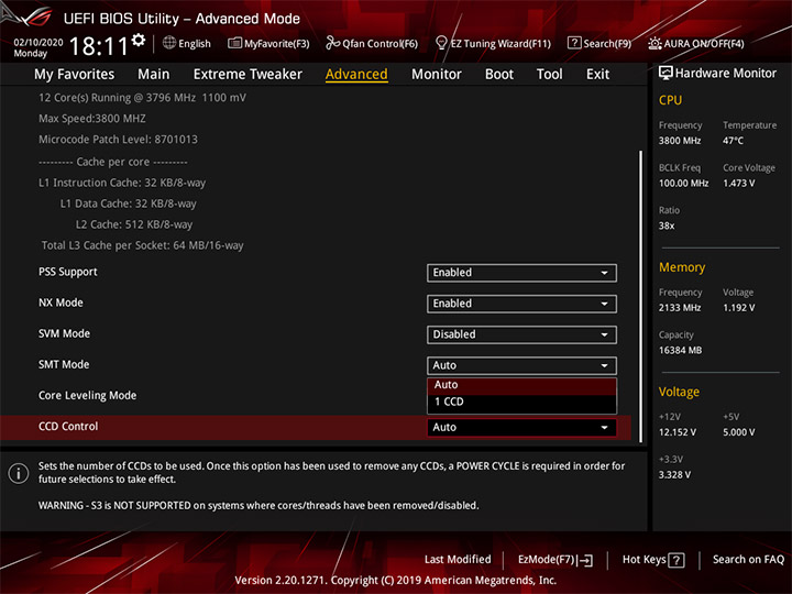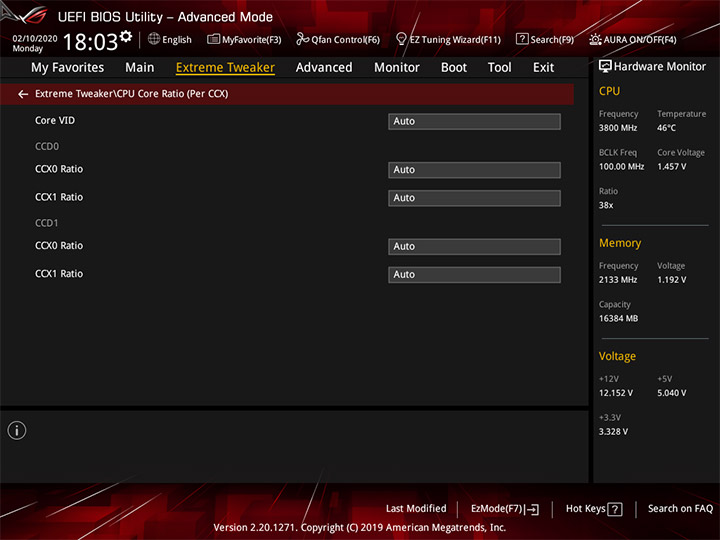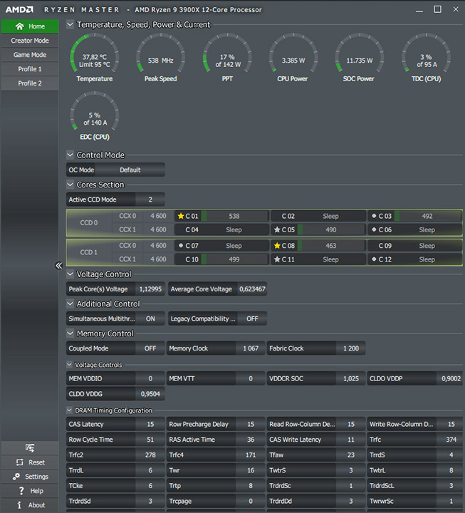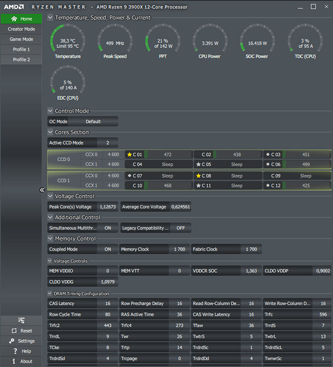 Все эксперименты проходили с прошивкой 1201 (AMD AGESA Combo-AM4 1.0.0.4 Patch B). Изучим поведение процессора с начальными настройками, когда частота памяти составляет 2133 МГц.