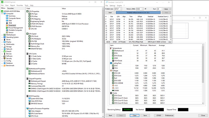 Сравнив результаты, полученные раньше, лишь при активированном XMP, нетрудно заметить как повысилась производительность ПК во многопоточном сценарии Cinebench R15 и LinX, а в однопоточных задачах, как и в 7-Zip, наметился спад по вполне объективным причинам — отсутствовал автоматический рост частоты у Ryzen 9 3900X. В определённых сферах подобный сценарий имеет право на жизнь, тем более нет замечаний к общей стабильности компьютера.