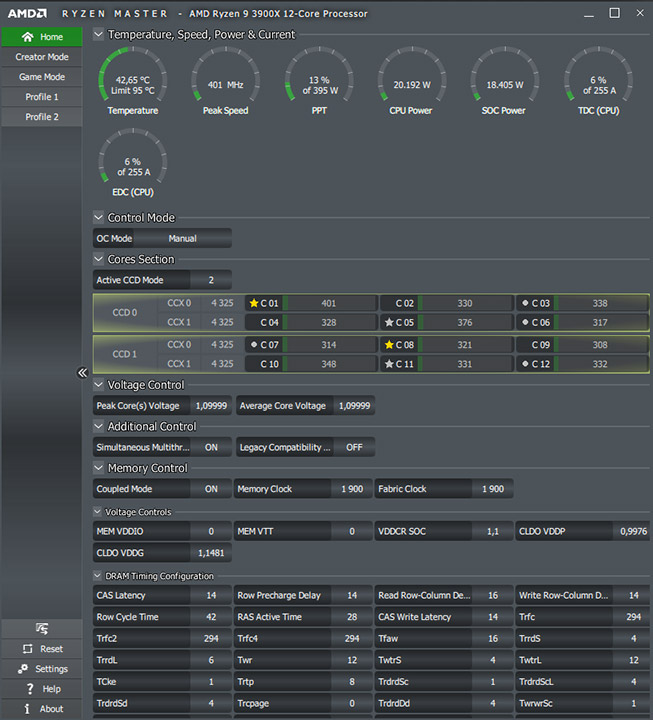 - операционная система: Windows 10 Pro x64 (10.0.18363.628), AMD Ryzen Balanced Power Plan, AMD Ryzen Master 2.1.0.1424;