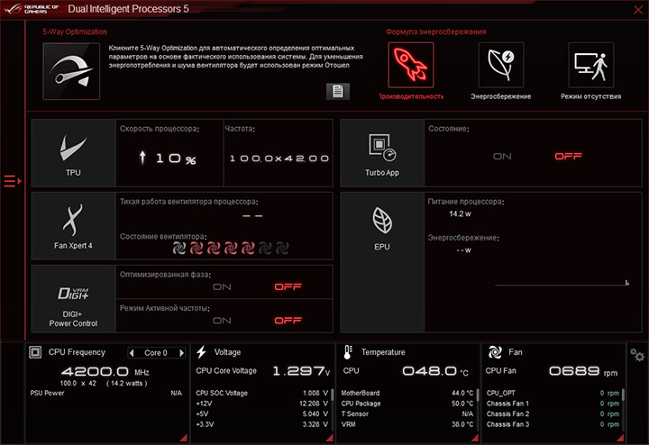 Управление системными настройками всё ещё проходит при участии Ai Suite 3 и входящих компонентов в набор DIP5.